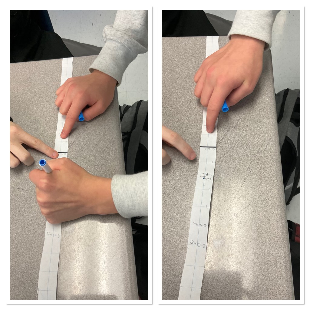 The task involves calculating volume of a cylinder, but before that happens there’s some calculations needed to get the radius of each cylinder. A major misconception that I noticed today was that students thought that the radius was half of the circumference. When I brought over a paper and made a tube and gave a ruler to check, it was easy to see that we needed a different approach. Some made a breakthrough when we got the equation for circumference. Others needed a bit of prompting, but we got there eventually with most groups.