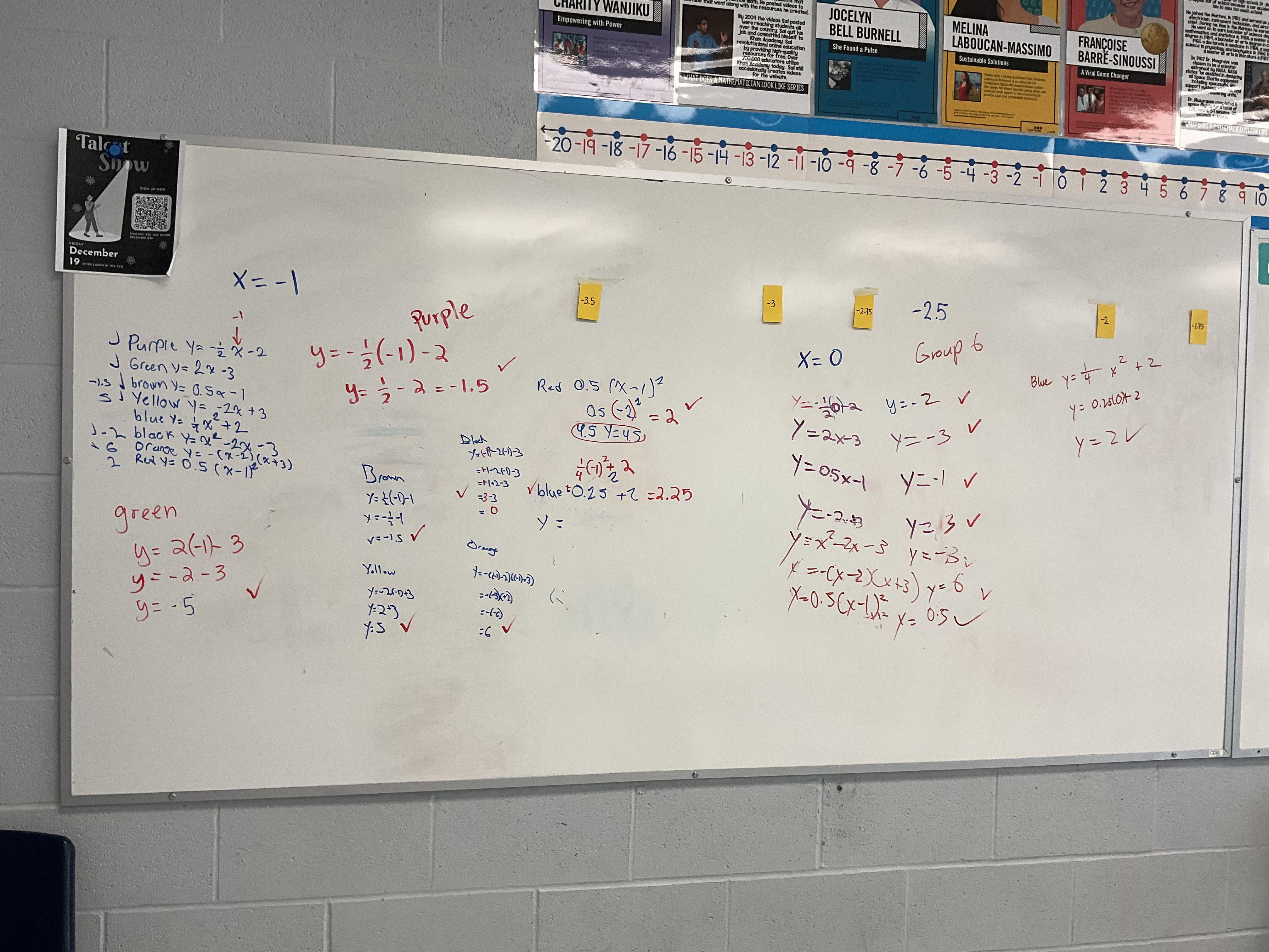 We next got split up into 7 groups. Each group got assigned an x value to plug into each of the following equations. We used x values of -3, -2, -1, 0, 1, 2, 3