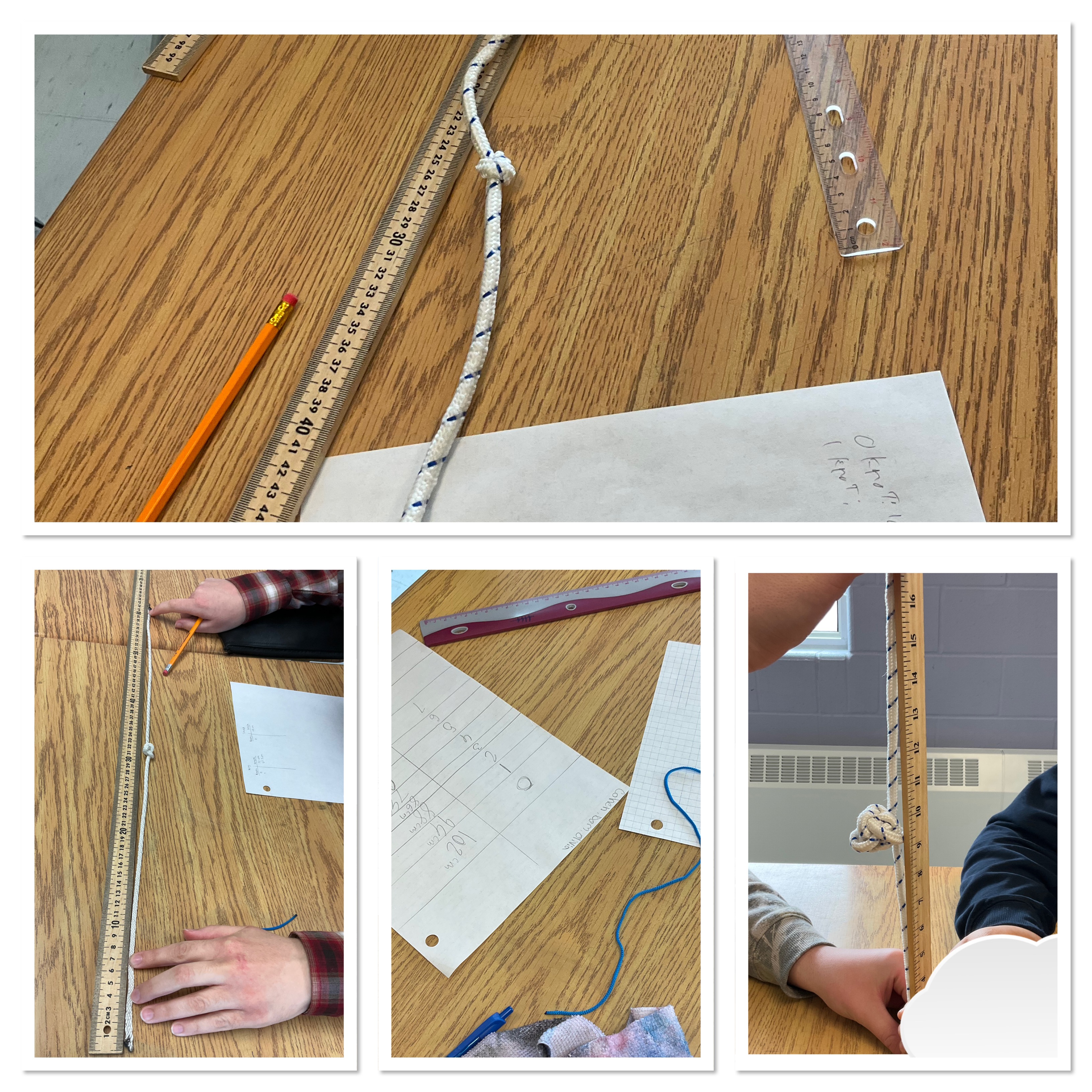 After we got our bean data recorded in mfm2p we started a new experiment. We had 2 different lengths and thicknesses of ropes. We measured the lengths, and then tied a knot, then repeated that process as long as we could.