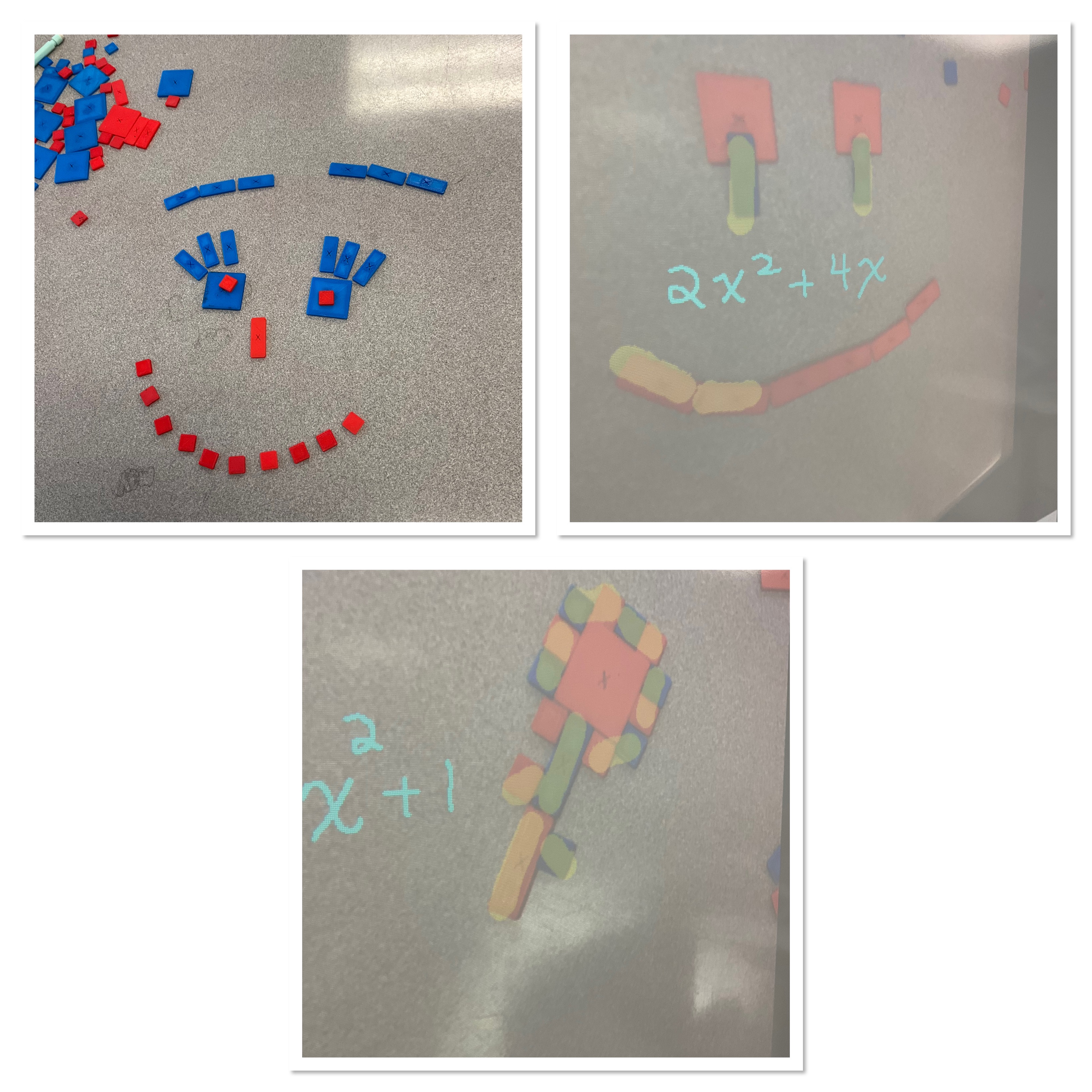 We each chose different side lengths for squares and calculated the perimeter and area and kept the values in the table. We made graphs of the tables and saw that the perimeter data is linear and the area data is non linear.