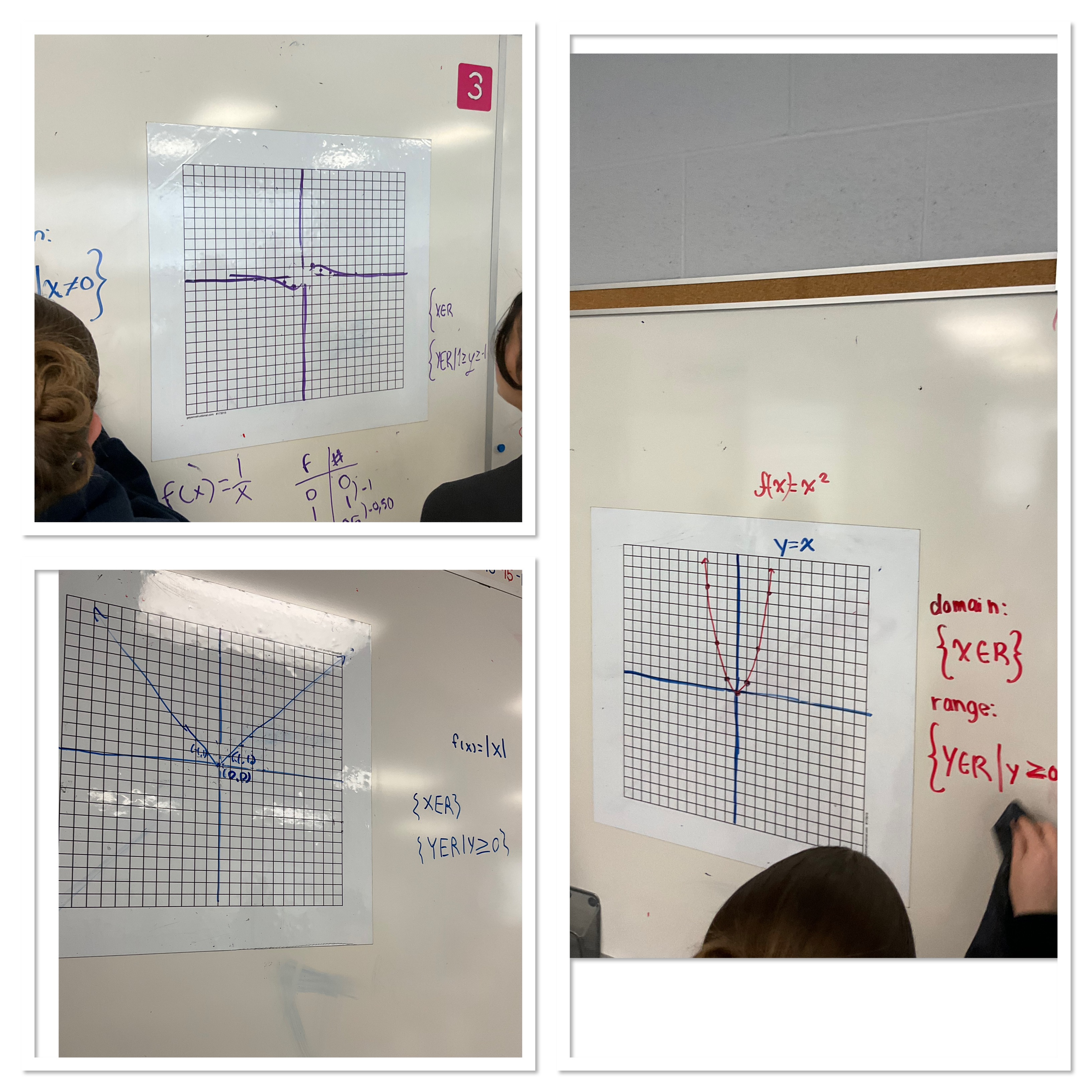 we are continuing to work on domain and range, and we are identifying key points and features thar will help us when we explore transformations of the parent functions in the coming days.