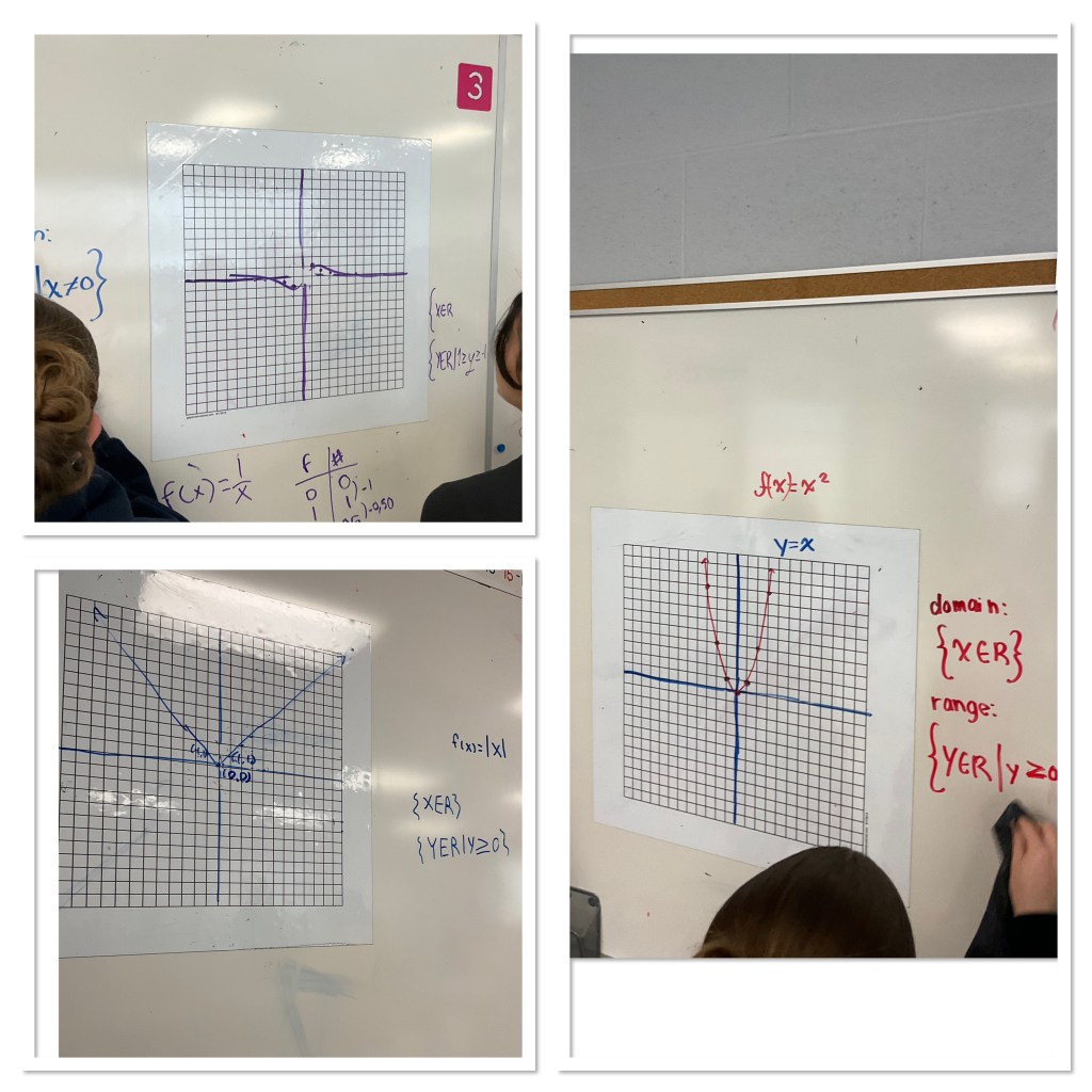 We made tables of values to help us draw each function. We noticed that f(x)=1/x has a gap in the domain since it is not defined when x=0. We needed to check what happens close to 0, on both sides, to see the behaviour near the asymptote.