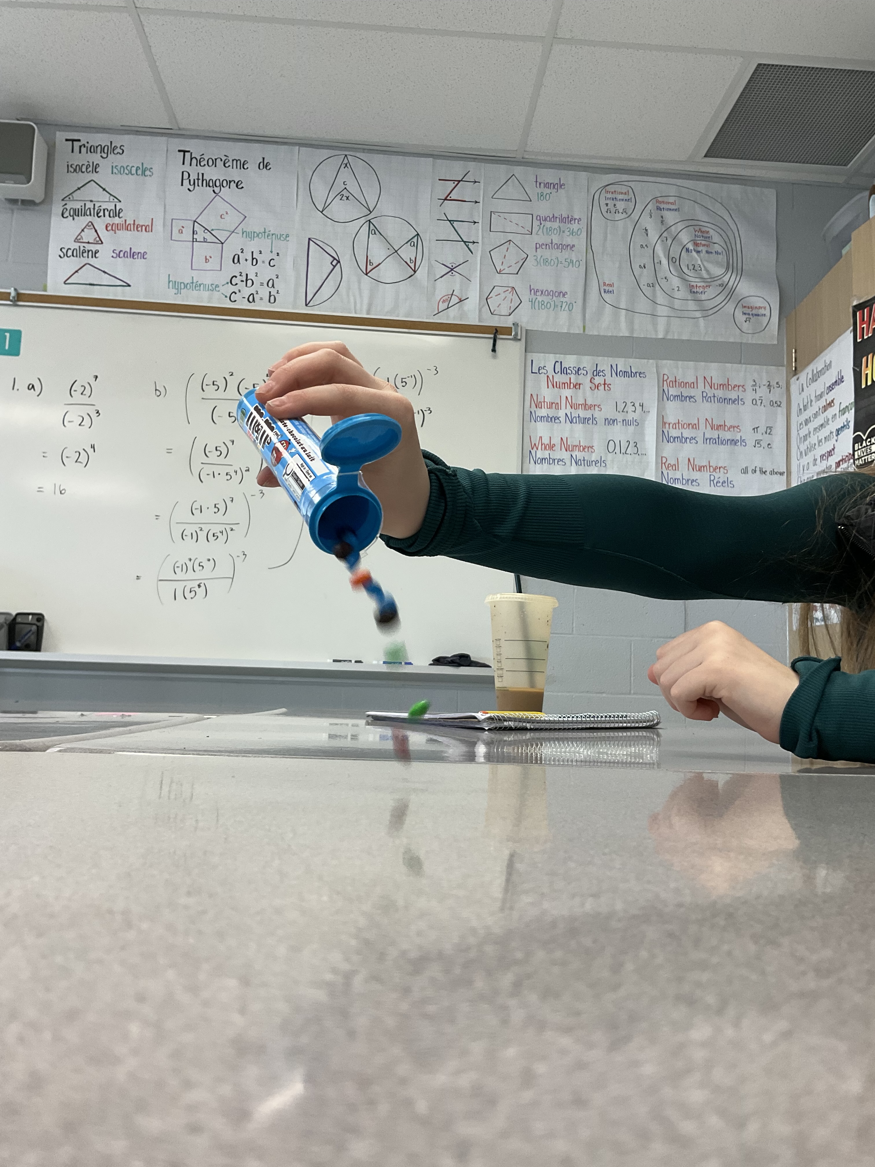 Today we spent grade 9 math up at the boards in random groups to work on representing exponents, and worked all the way to learning 2 exponent laws.