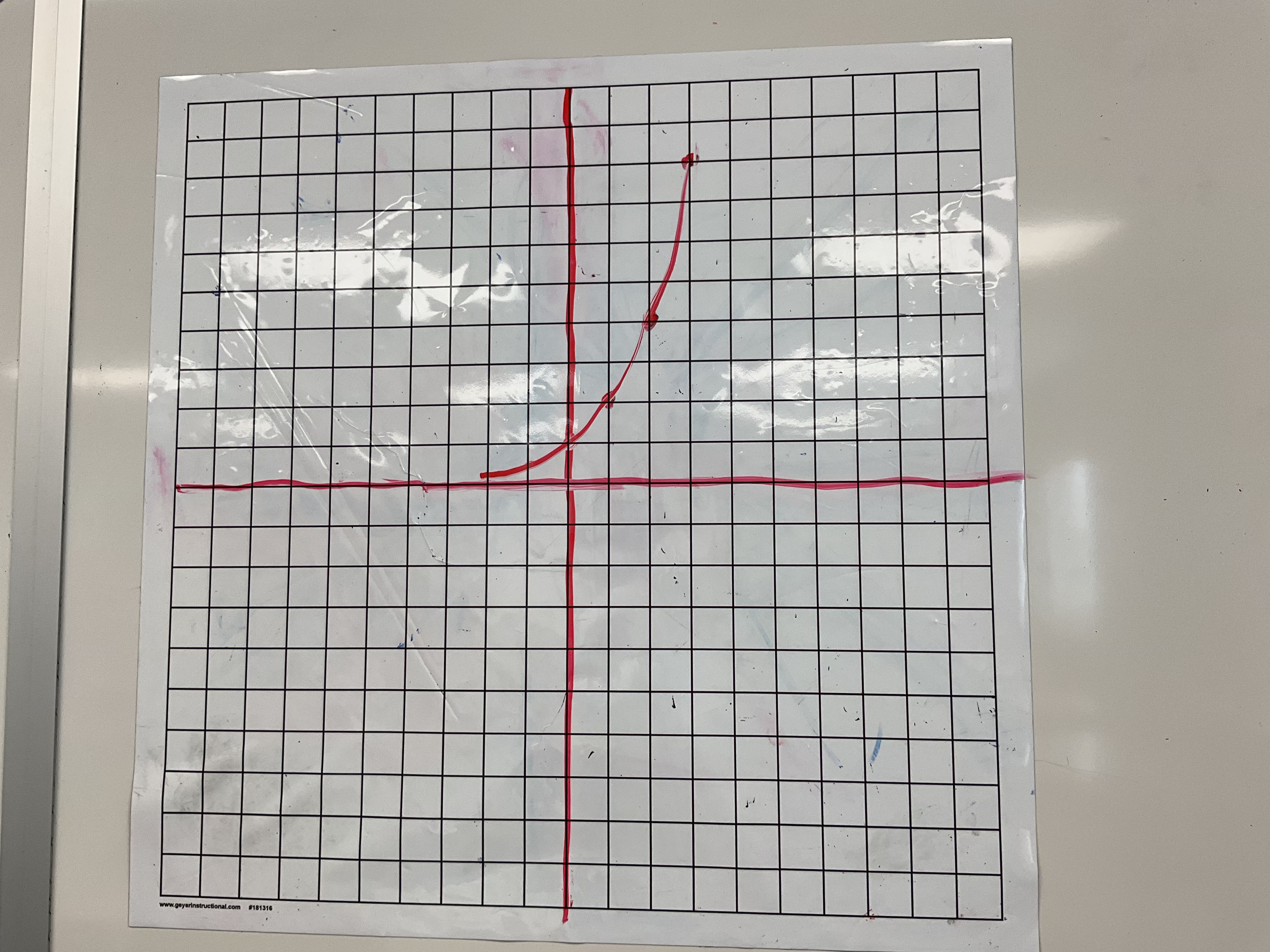 Groups made graphs, and we looked at features of the graph, then tried to make an equation. We used our reasoning skills about how we were losing half each time, so we’d be multiplying repeatedly by (1/2), which led to the creation of an exponential equation. We noticed that in our situation there was a horizontal asymptote that was not 0, there were a few m-less m&ms. We played around with transformations to see if we could fit the data better.