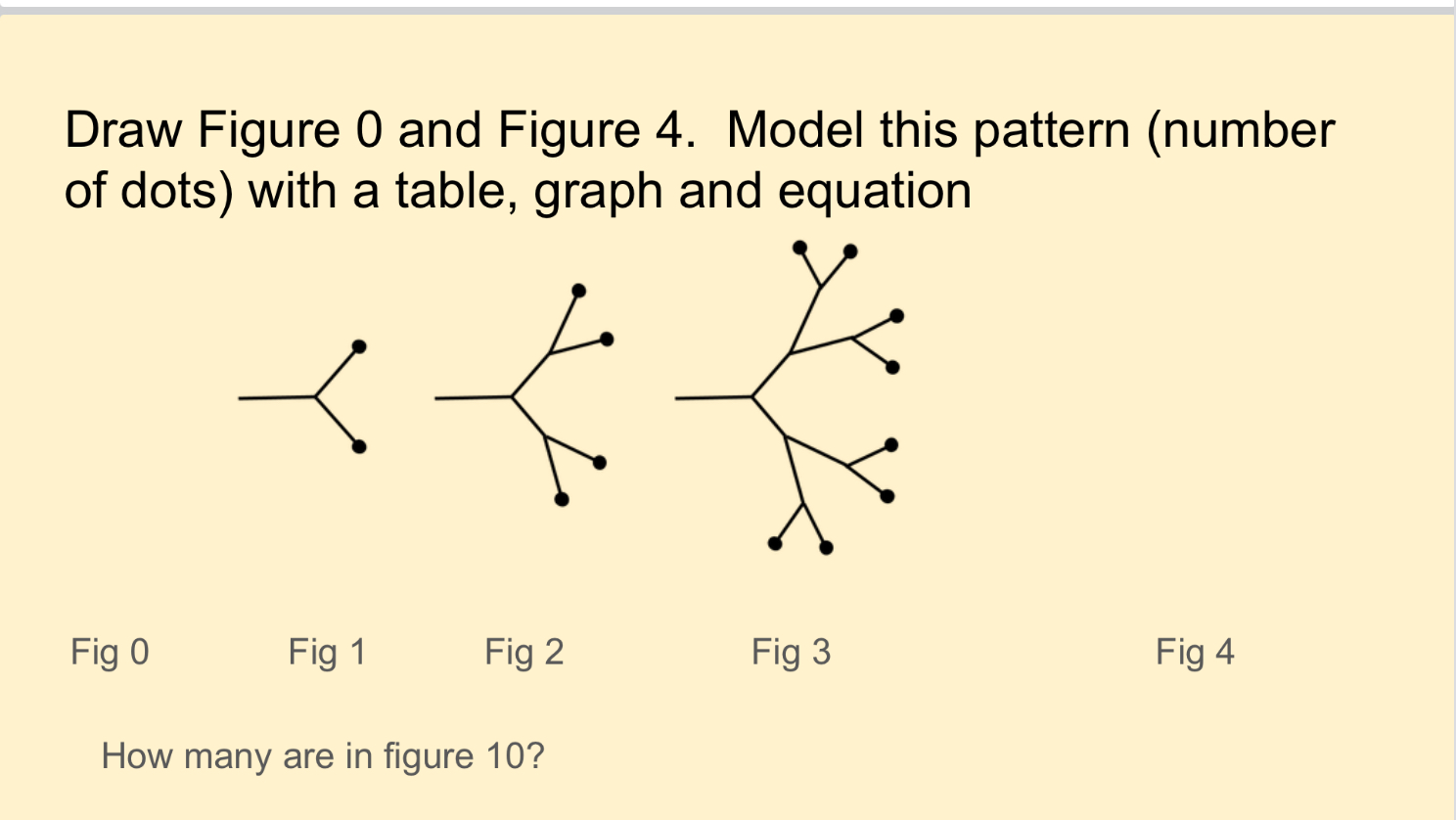 This one was a bit different than the usual linear and quadratic patterns. We were modelling the number of dots or terminal branches.