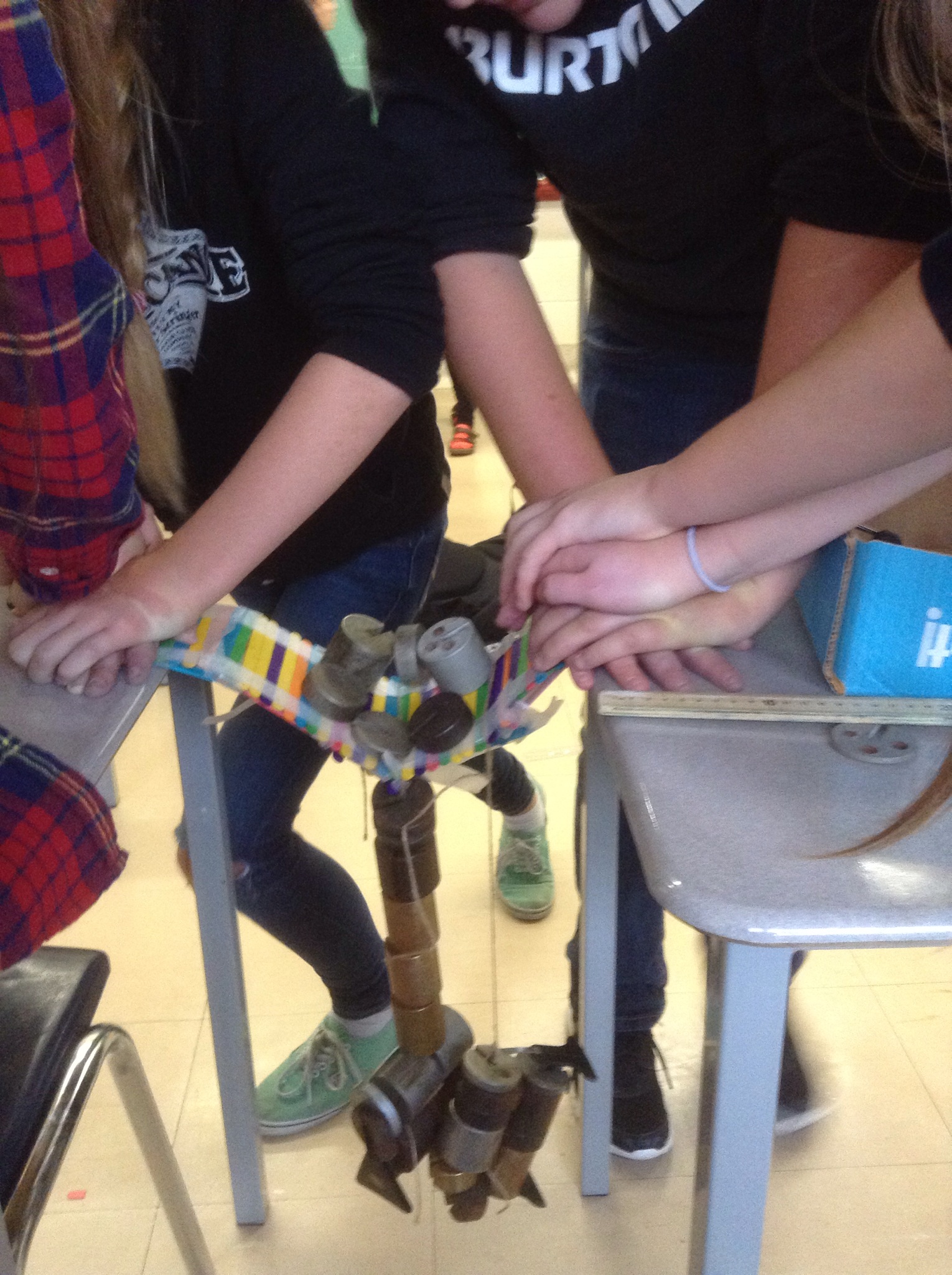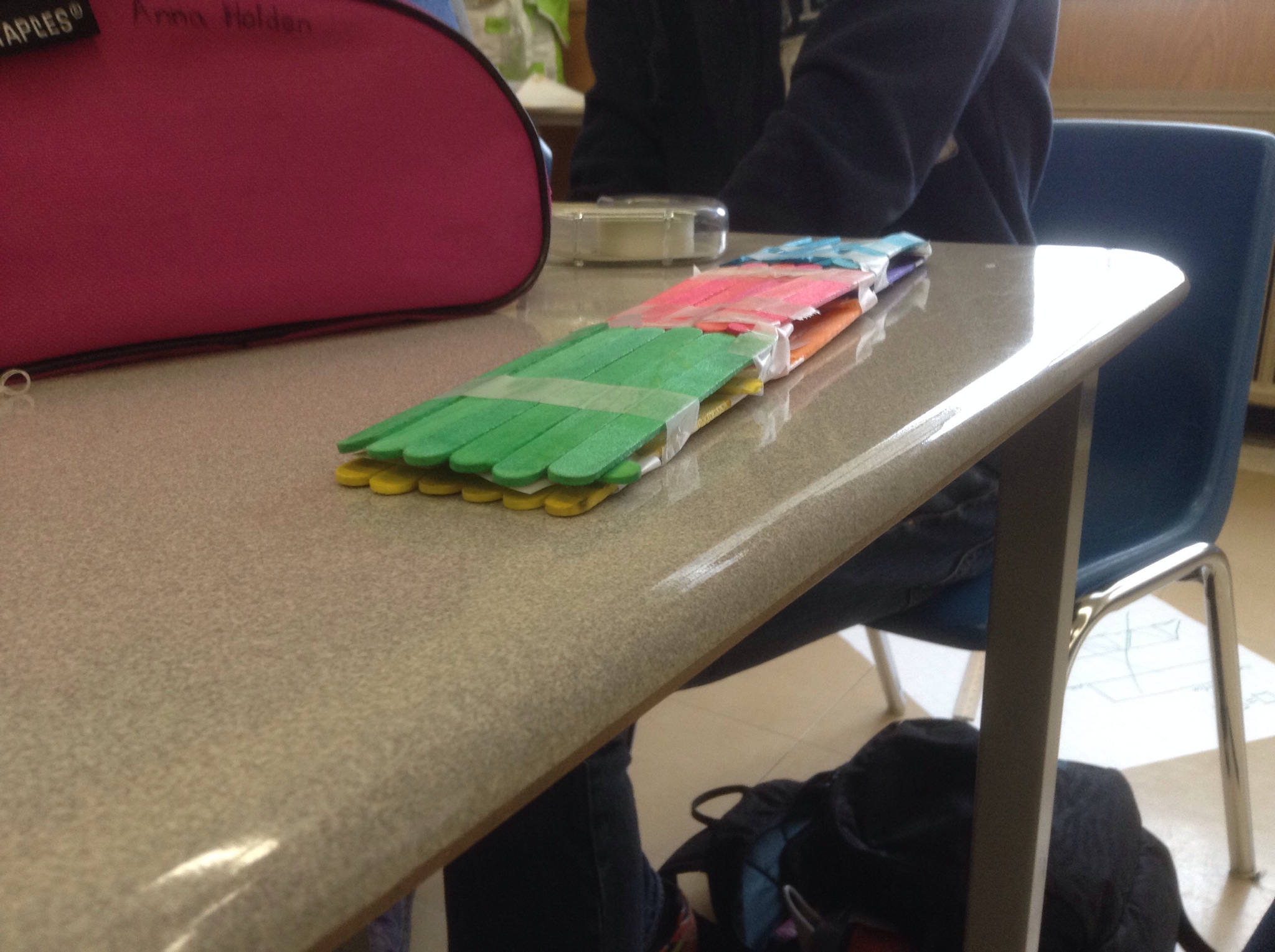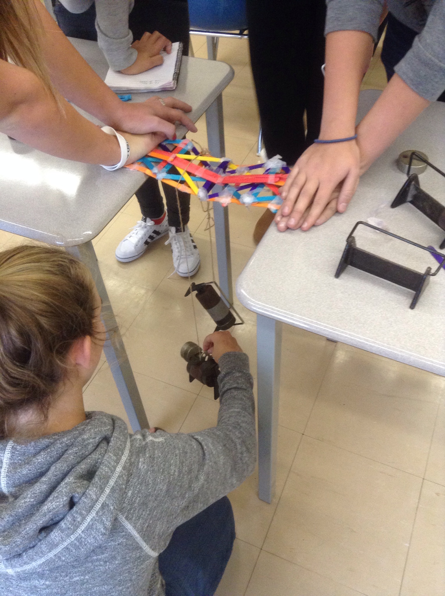 We were glad to have our “Engineer in the classroom” again today. We spent the class designing and building popsicle stick bridges and then testing them to destruction.