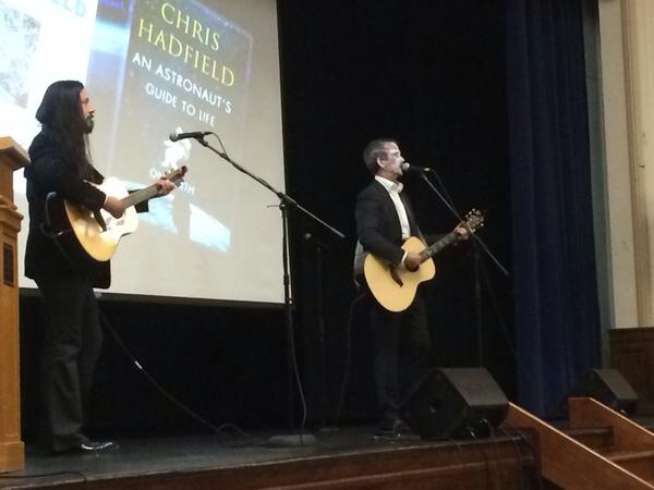 He was joined on stage by Rob Baker of the Tragically Hip as they performed his song “Space Oddity”