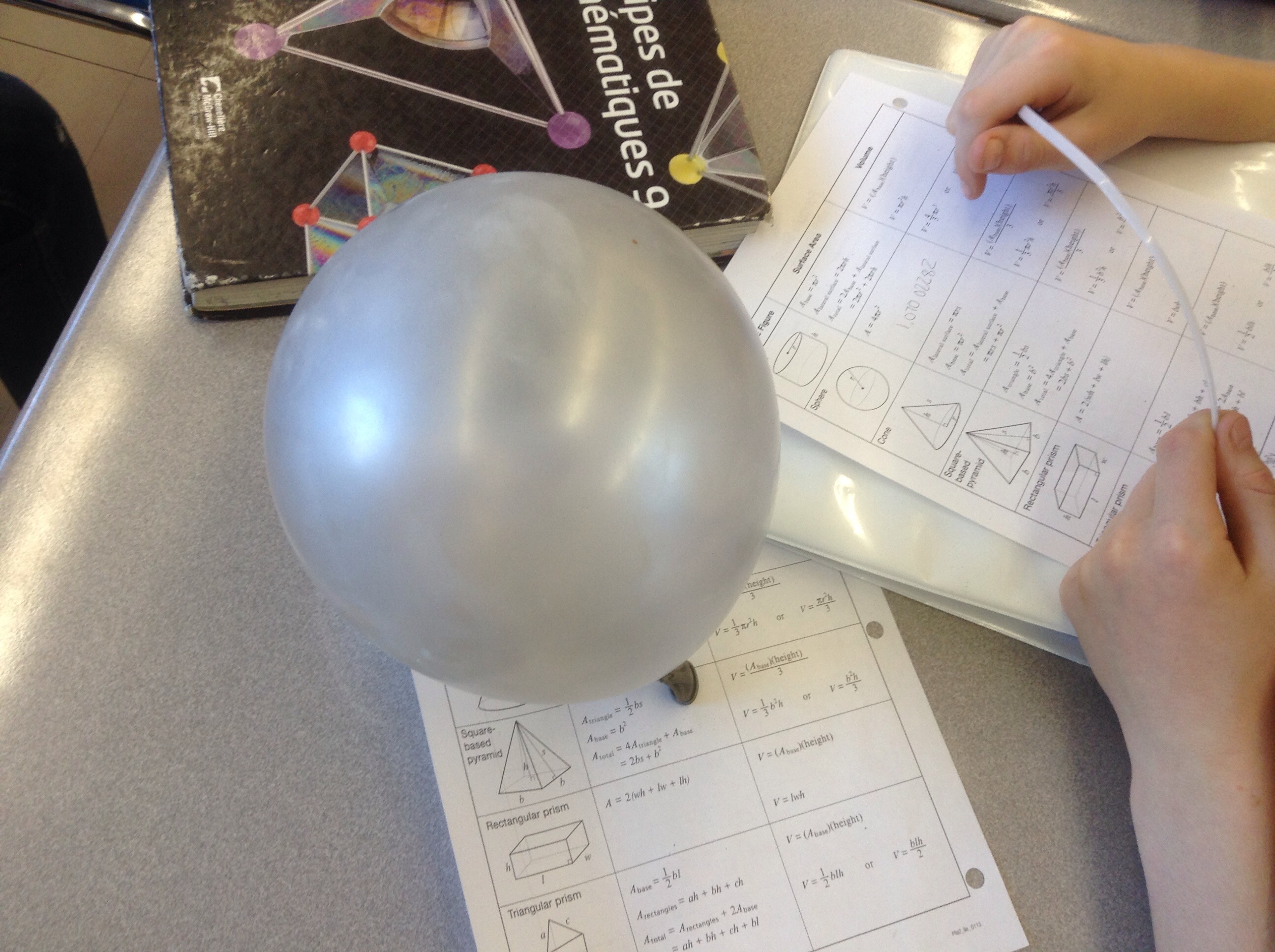 Today we calculated the volume of the balloon. We had to use the circumference to calculate the radius first.