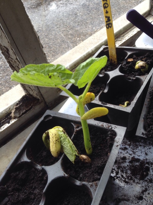 The beans are emerging, and growing fast.