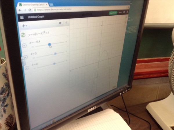 grade 10s looked at desmos.com today to investigate parabolas in the form y=a(x-h)^2+k (note, the little ^2 is the oldschool way to show someing as squared)