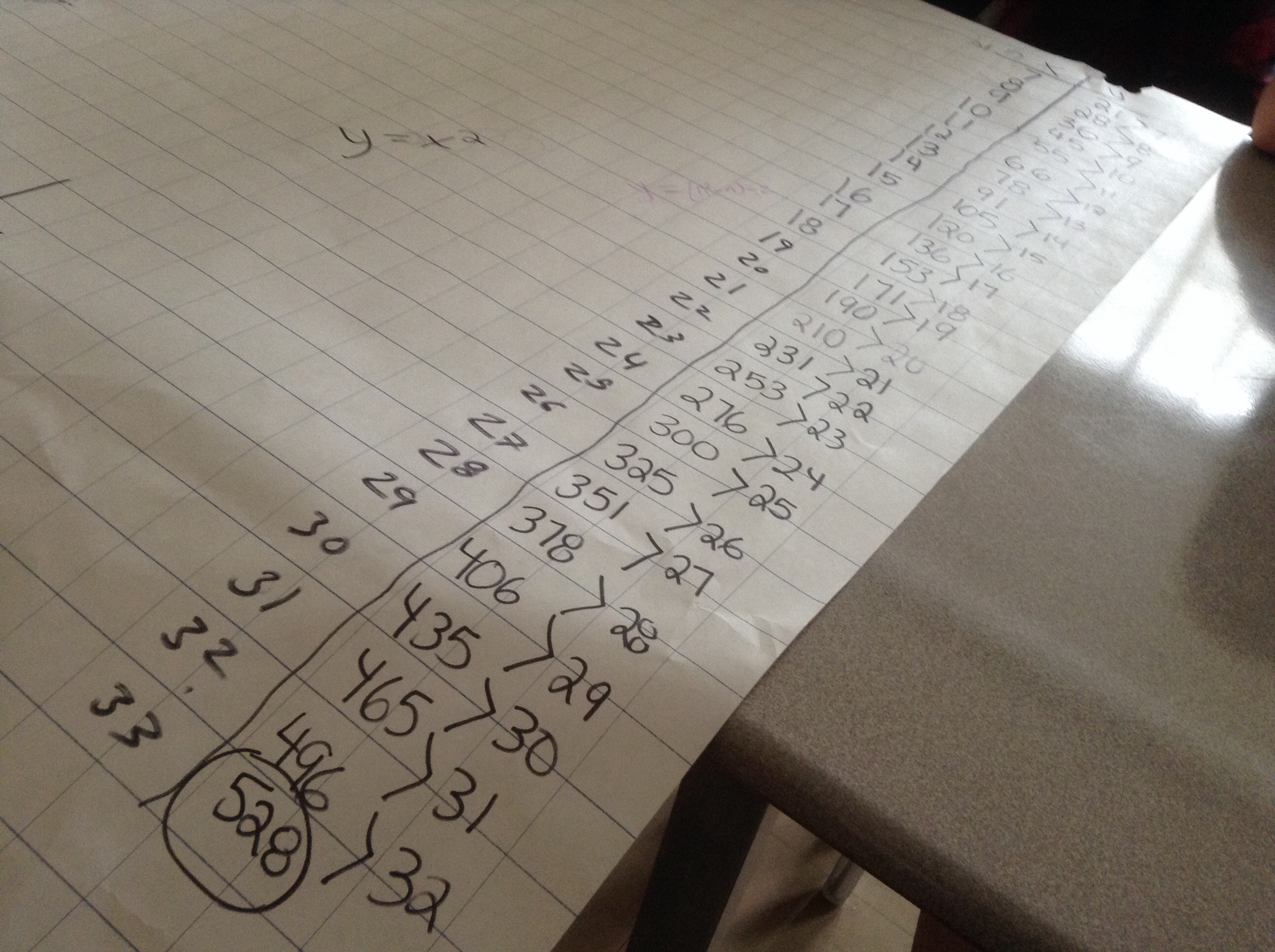 we modelled the situation with a table and graph, and someone even found an equation to use as well! This is our introduction to quadratic data.