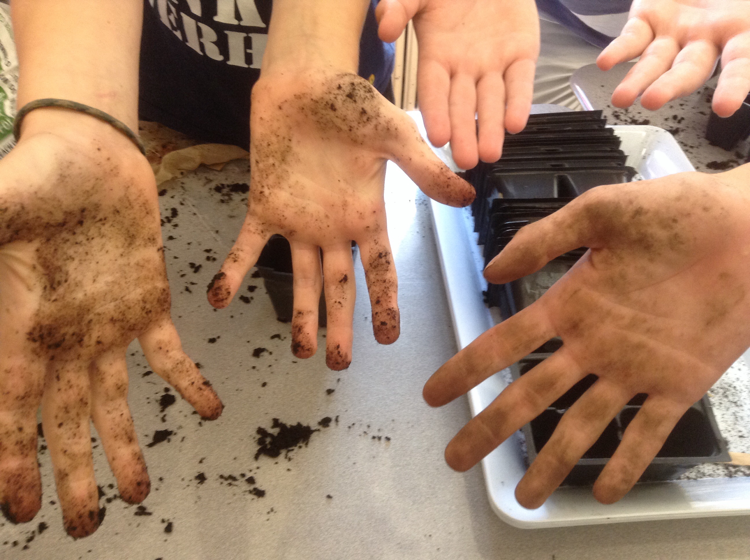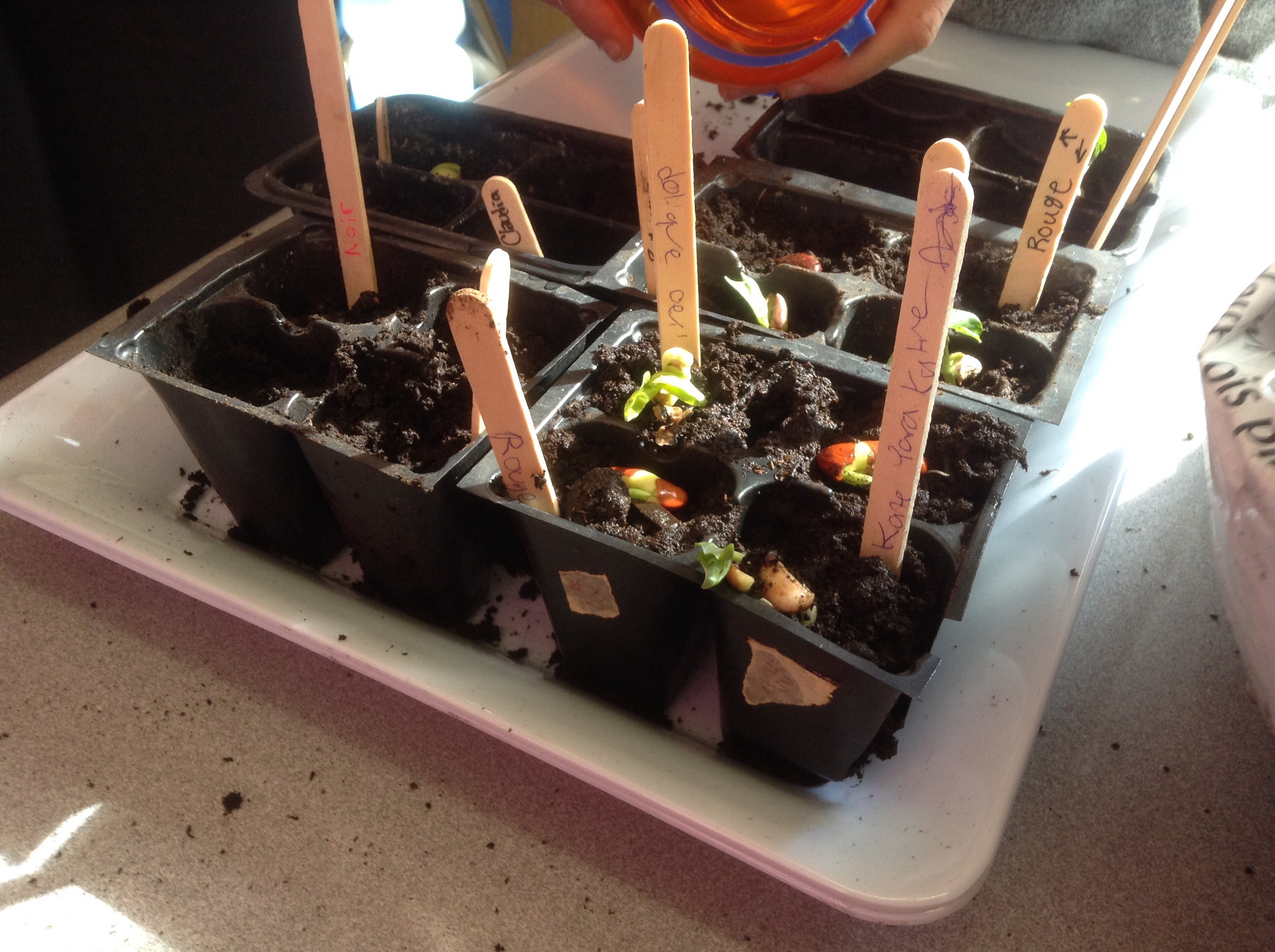 We planted our bean sprouts today. We’re going to measure them to watch how fast they grow each day.