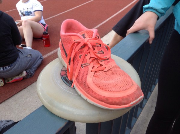 we estimated the dimensions of a frisbee using objects of known size. Since we don’t have rulers in our pockets, we used shoes which have their length in cm written inside.