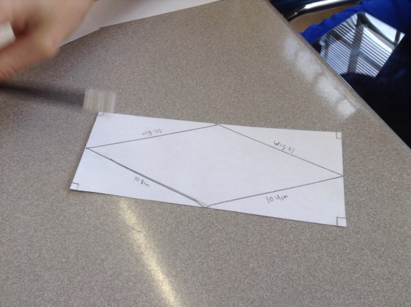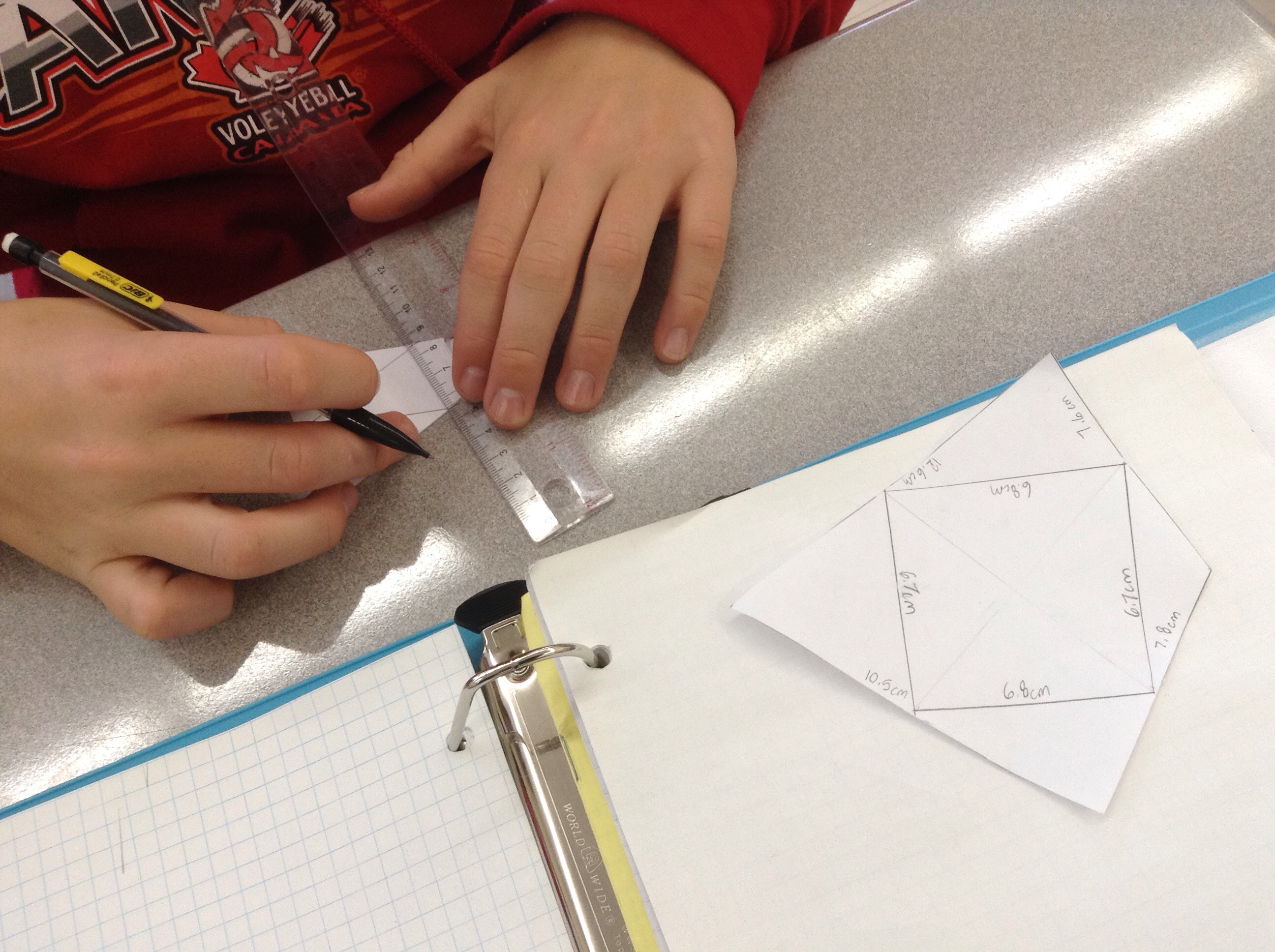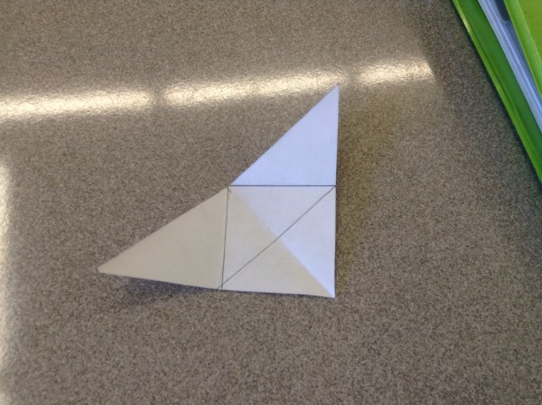 We tried the same activity with triangles. The inner triangle is 1/4 the area of the big triangle. It’s a scaled down version.