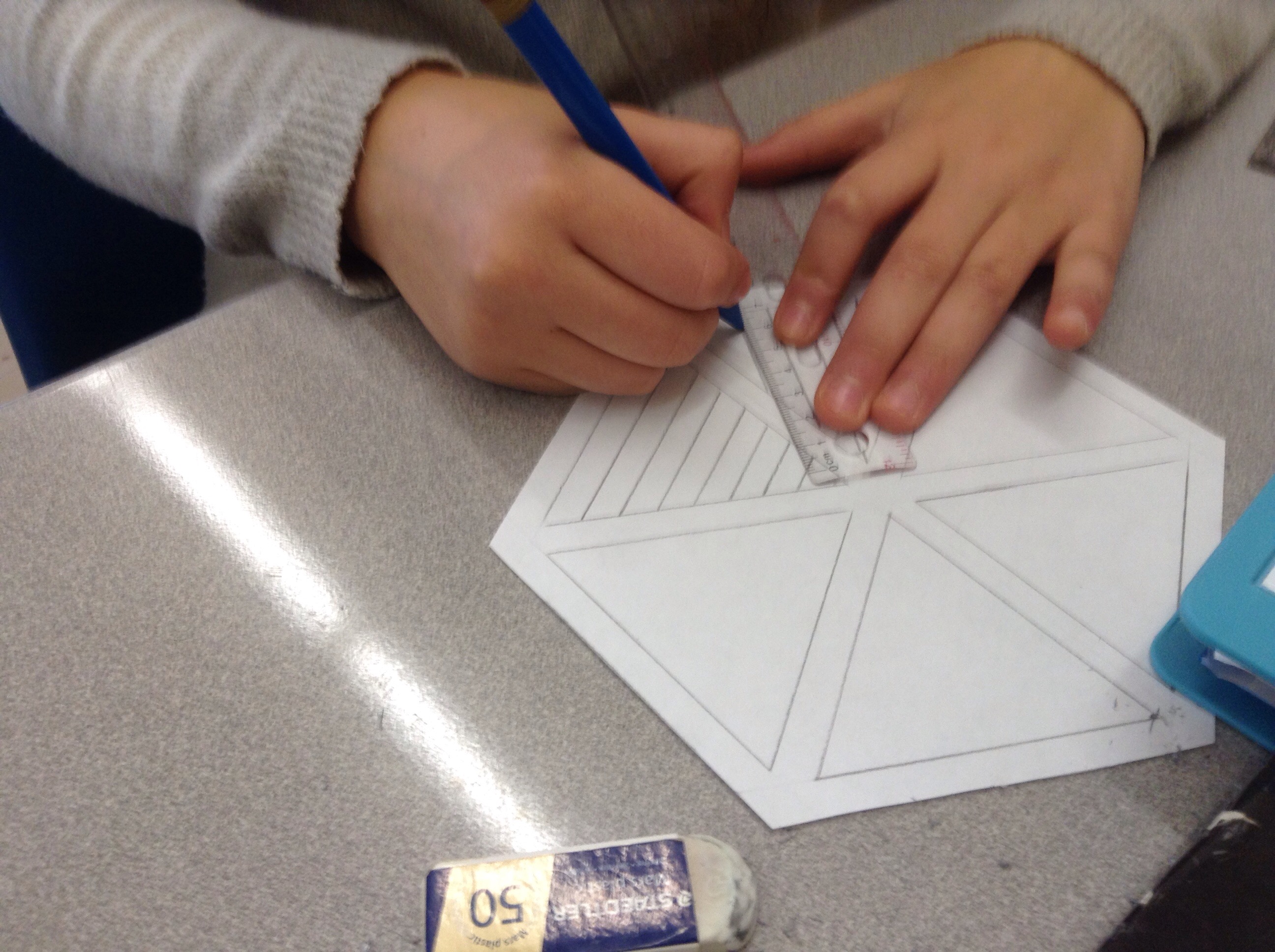 We’re making tesselating hexagons to put on the wall. Today we learned about regular shapes, and how to determine their angles. We also learned that some shapes tesselatw well, and others do not. We’re decorating our walls tomorrow with the hexagons.