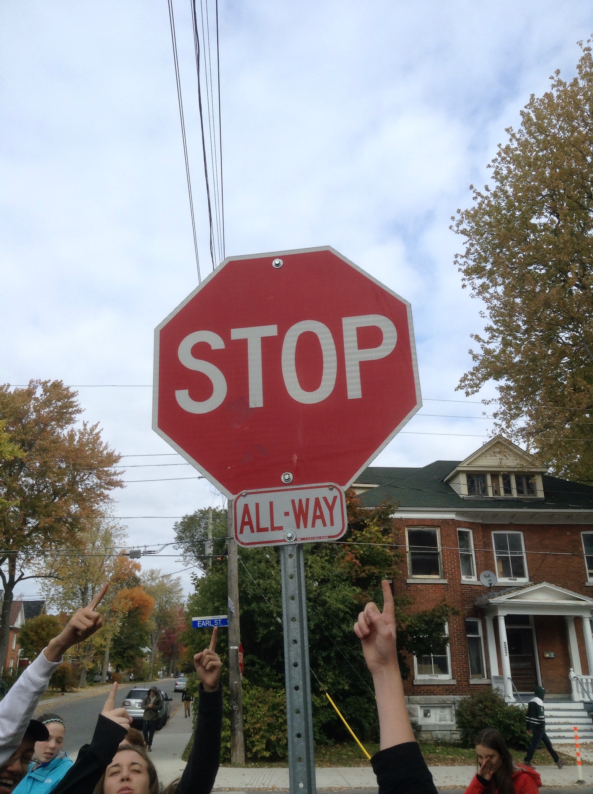 we’re trying something new! We’re going for a brief body break partway through class to refocus. It takes 5 minutes, but wakes us up. Today we saw a stop sign…and verified that it is an octagon.