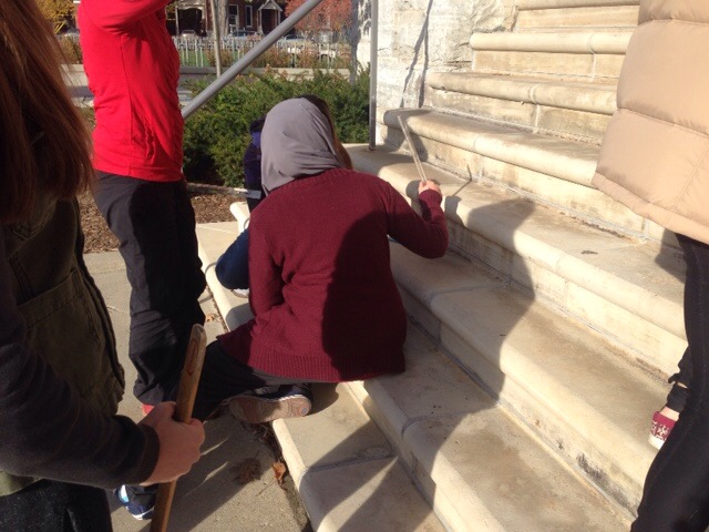 We took advantage of a small class, and a lovely day, to go for a walk and measure the stairs around Queen’s.