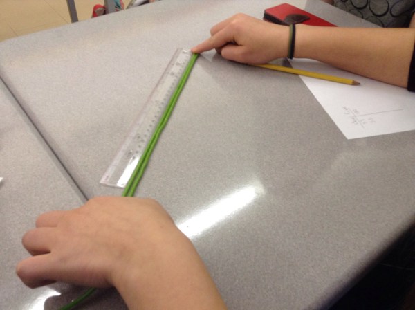 We are measuring the circumference of a circle, and comparing it to the diameter. We graphed it, and found the slope is pi!