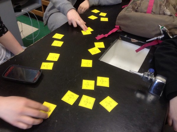 In chemistry we look for trends and patterns and use that to make predictions about other things. In this game, there are 20 different aliens, but each group gets only 19 cards and uses their patterning skills to predict the missing piece.