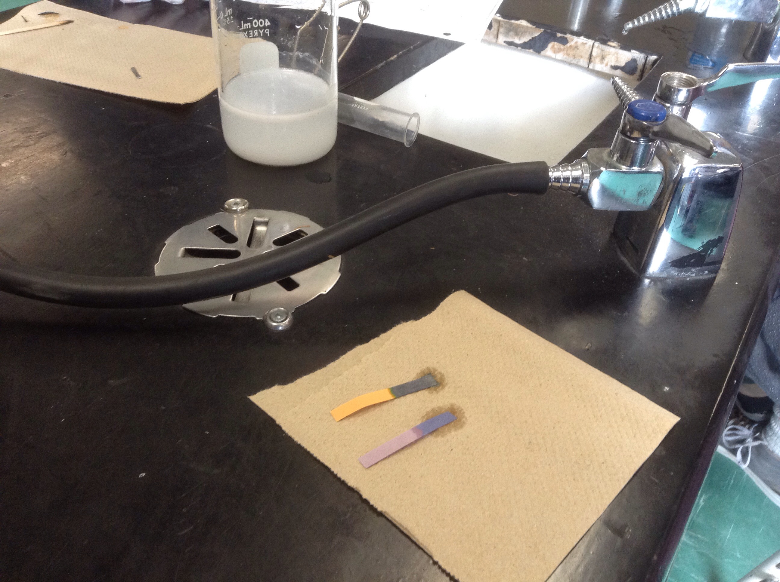 We had reacted calcium with water and produced hydrogen gas (we heard the “pop”) and calcium hydroxide (it’s a base).