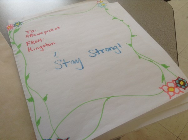 We’re very aware of the difficult situation in Attawapiskat, and have written some letters to the youth. Hopefully our words will mean something to a youth far away.