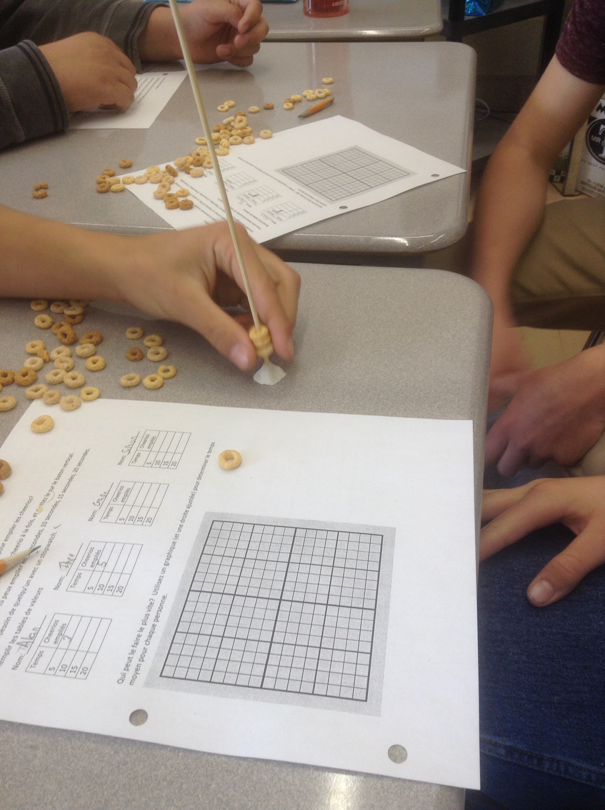 At the end of the class, the fastest and slowest members of each group raced. The group determined the head start (number of cheerios) to give the slower player so that they would have a tie at 20 seconds.