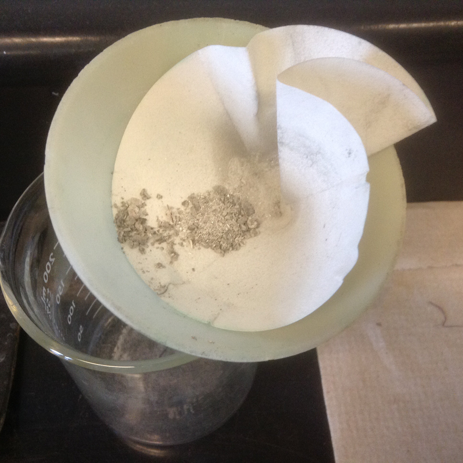 We successfully displaced silver from silver nitrate by using copper wire. Our copper wire became much thinner during the experiment, and our liquid turned blue. The silver we created was filtered out, and we did some calculations to determine the percent yeild of our experiment.