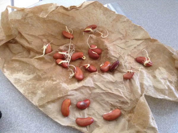 We opened up our beans today….we could smell that it was time! Some grew, some did not. We represented our results as fractions and decimals.