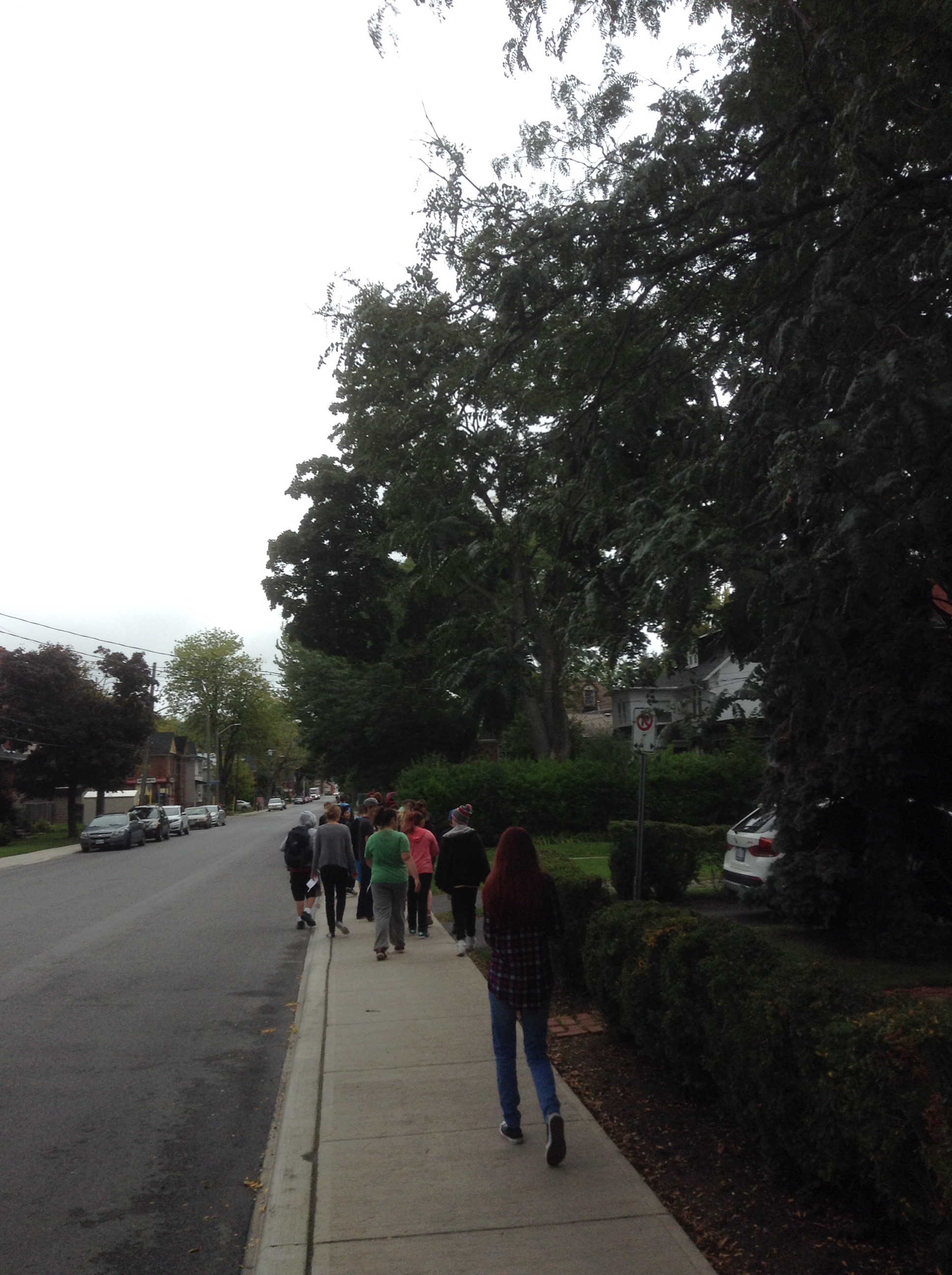 We walked today and used pedometers to track the steps we took as we walked around the perimeter of the city block. We used the number of steps we walked in a 10 meter distance to do some distance calculations too.