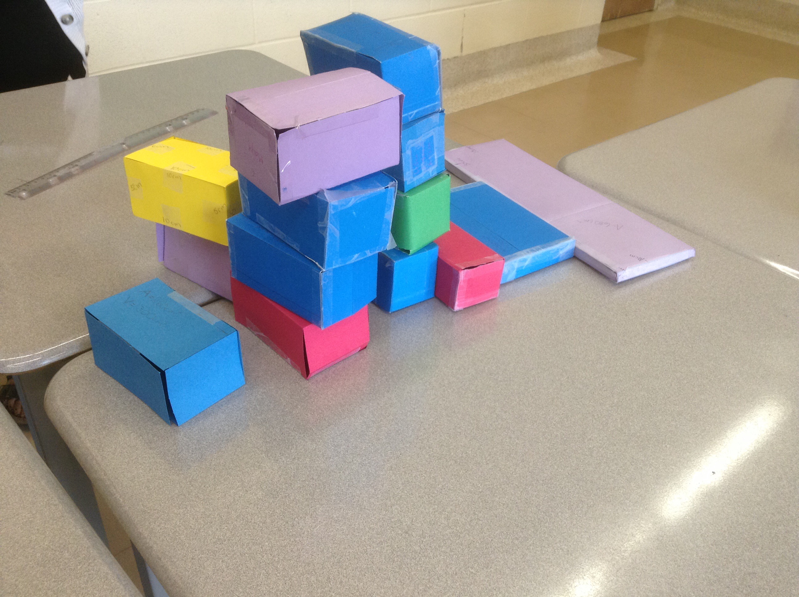 We looked at the prisms we made. All have a volume of 300 cubic centimeters.