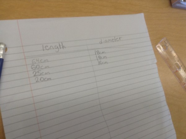 The next investigation we did involved licorice laces. We measured the length, and then made tte licorice into a circle and measured the diameter.