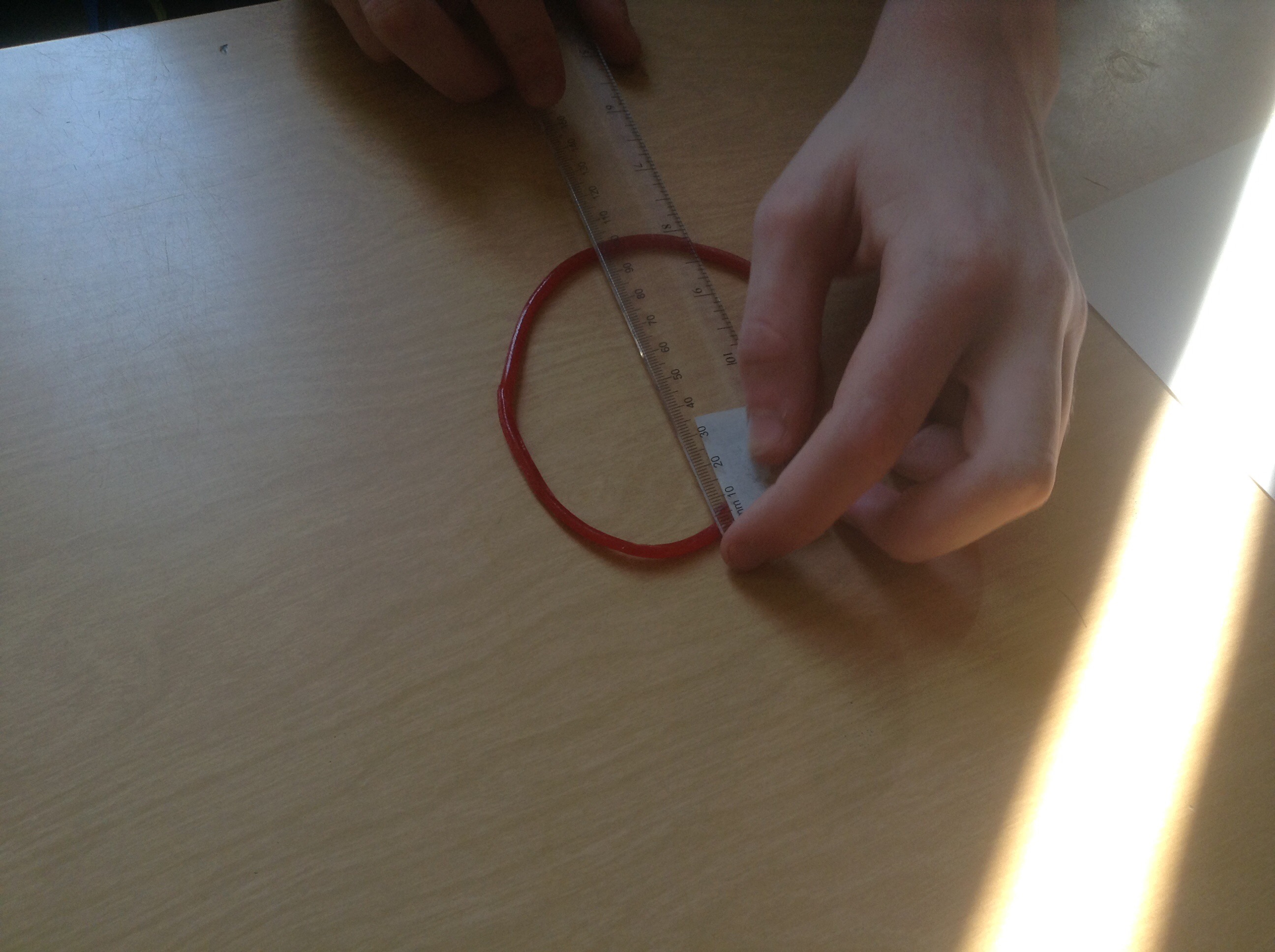 The next investigation we did involved licorice laces. We measured the length, and then made tte licorice into a circle and measured the diameter.