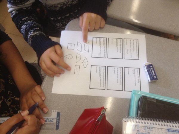We’re working on reading questions clearly, and deciding which quadrilateral meets the description given.
