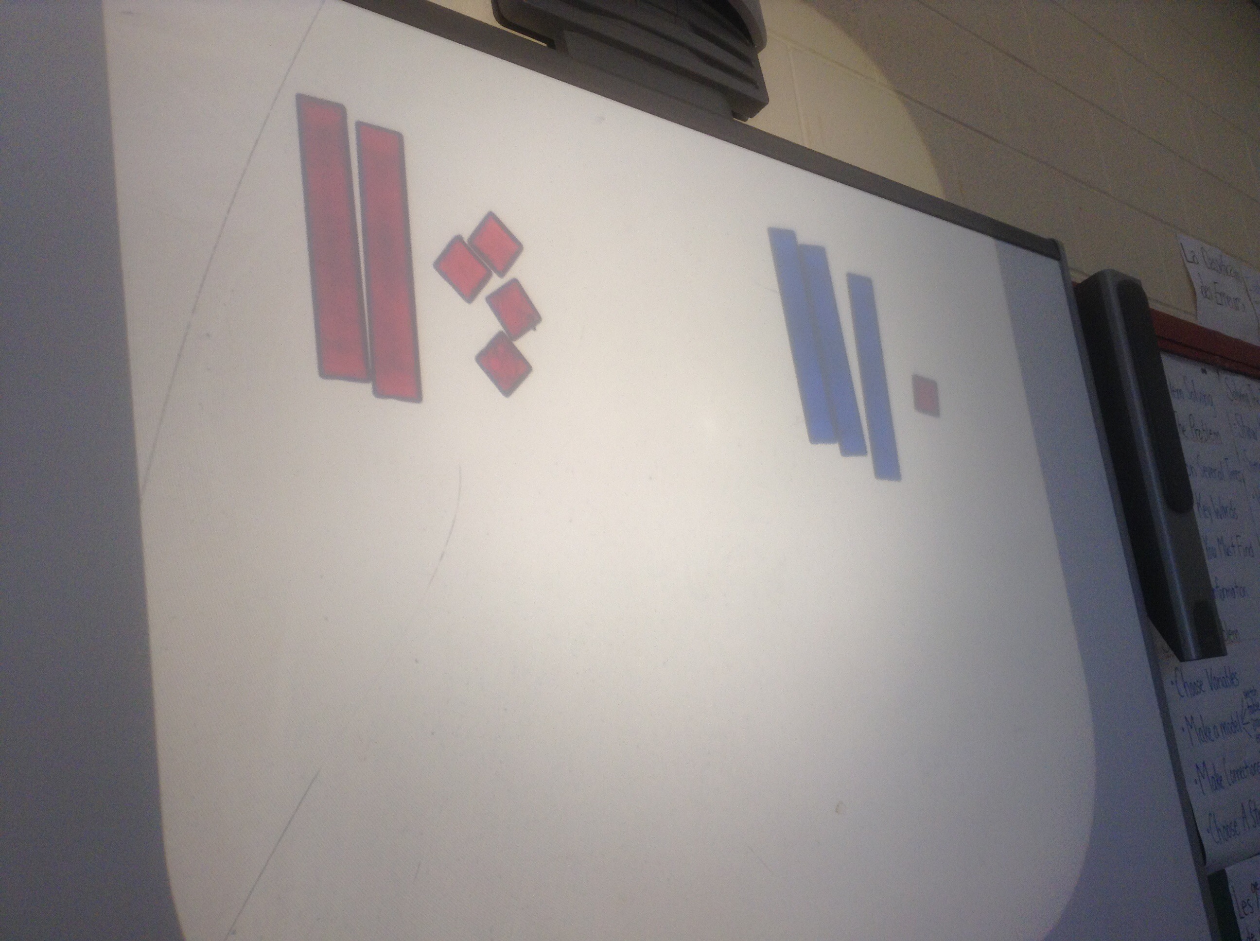When we start talking about variables, the long rectangles represent a positive and negative x. Before long we were adding binomials: here is (2x+4)+(-3x+1).