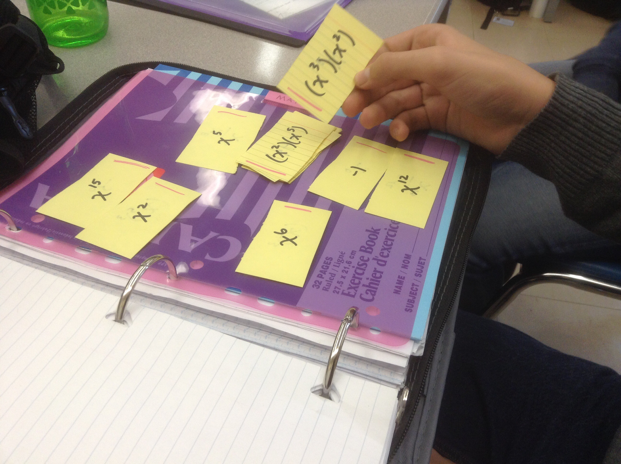 This game worked really well as a review of exponent skills for my grade 10 class before starting to discuss quadratics. My grade 9s played this game as a consolidation step where peers worked to help others to work through the activity.