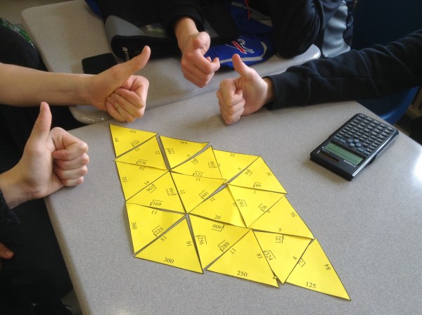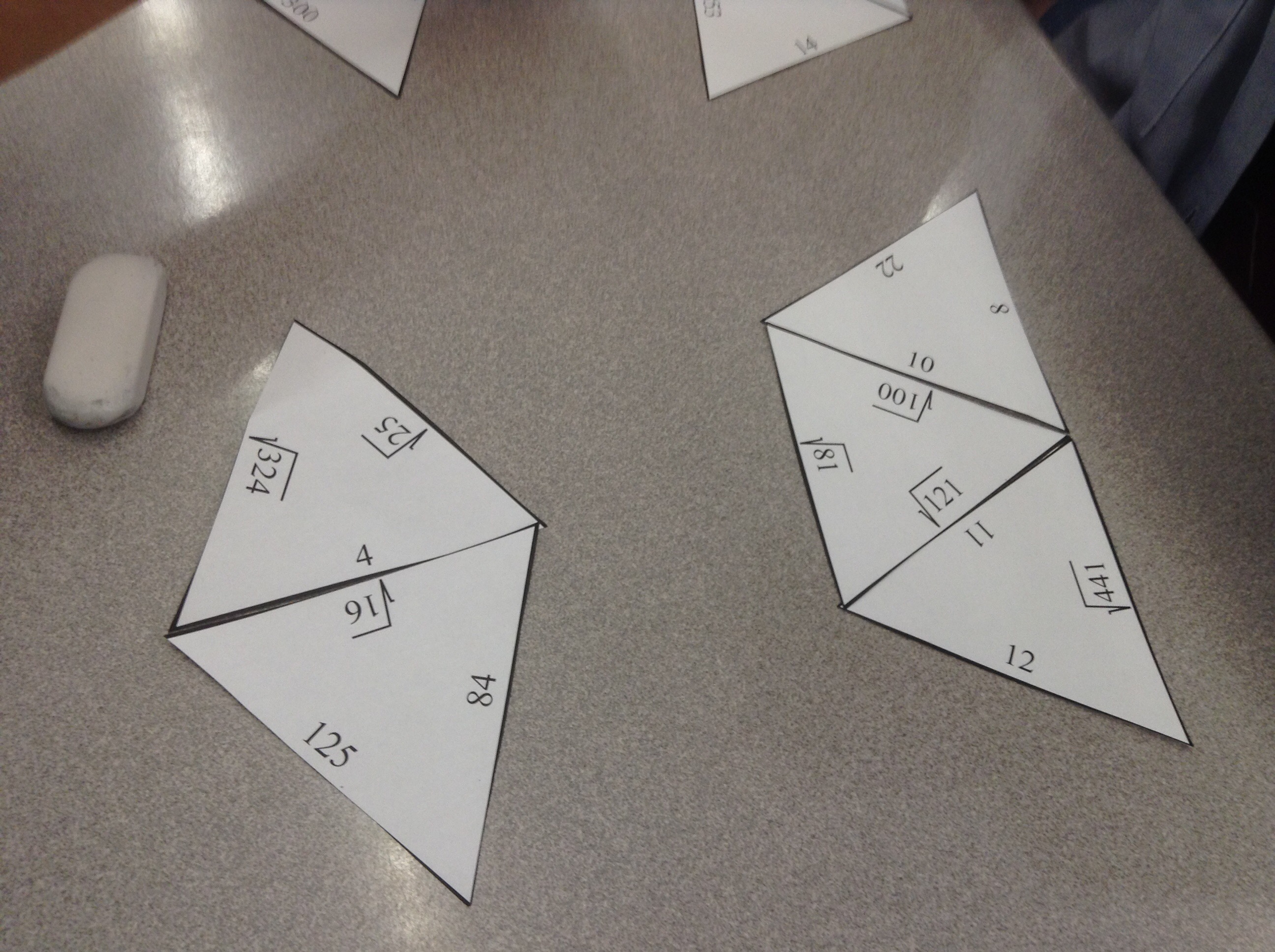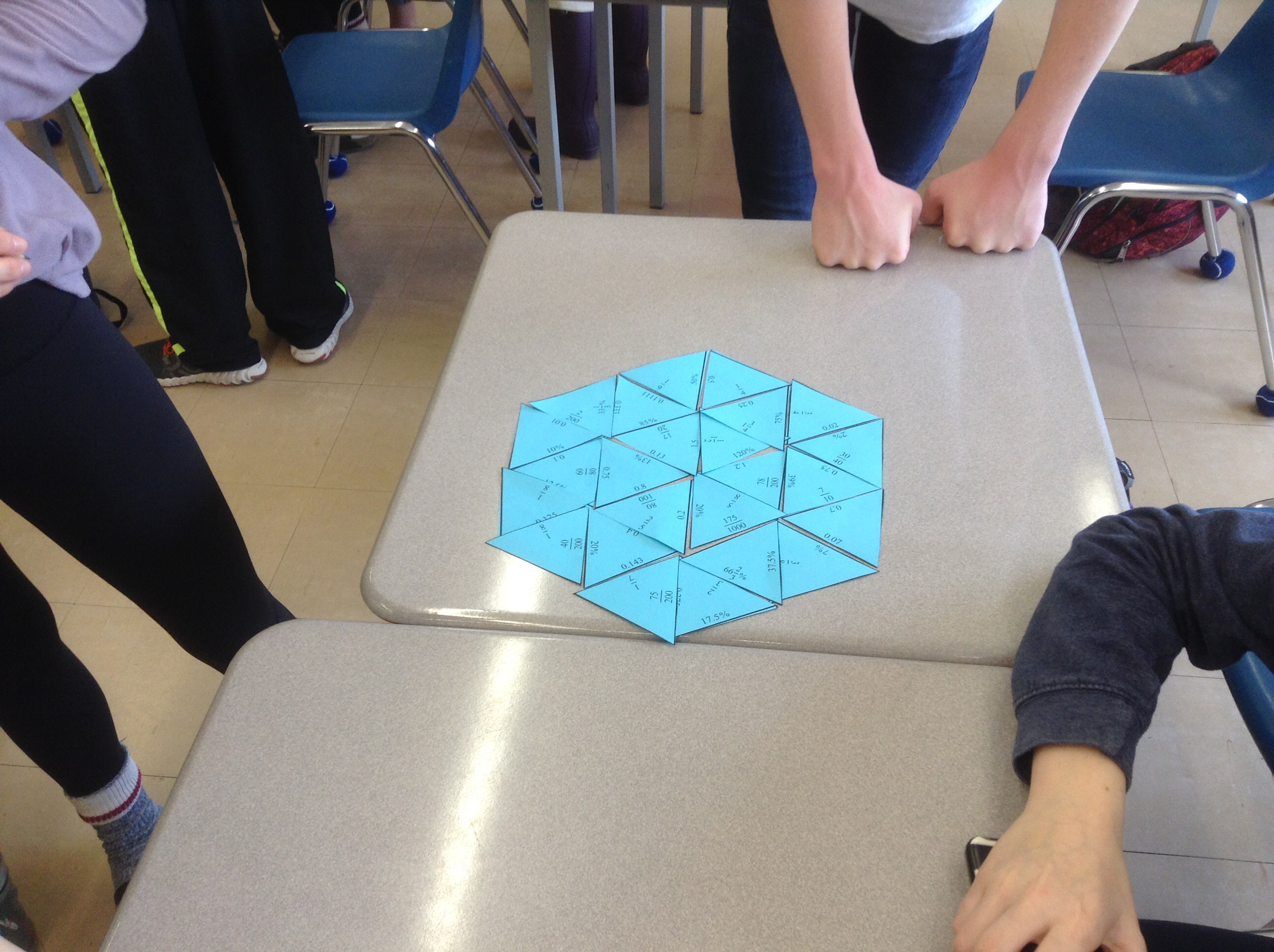 Another puzzle we did today was a tarsia puzzle reviewing fractions, decimals and percents. (source). Equivalent expressions are matched until all pieces are connected.