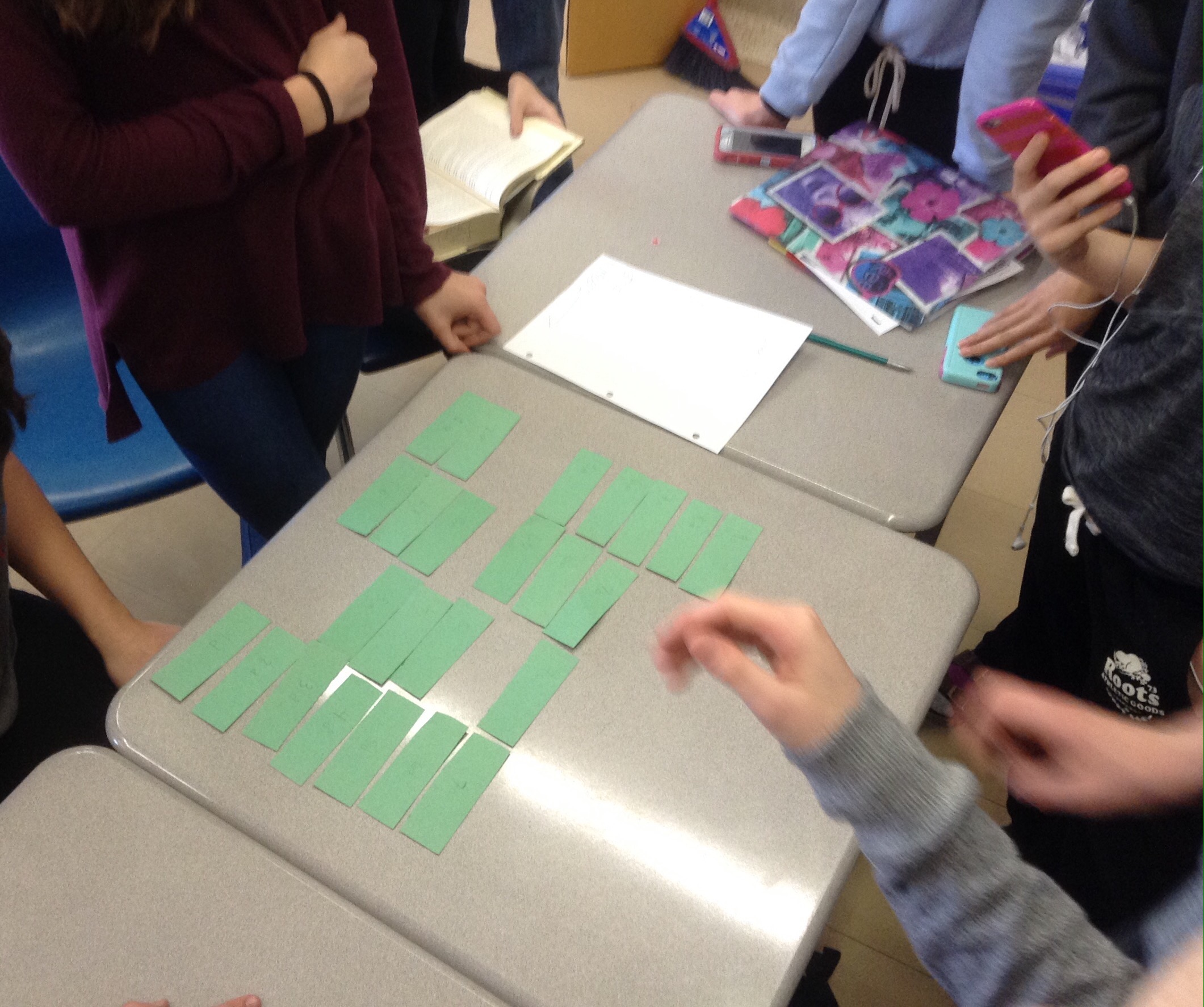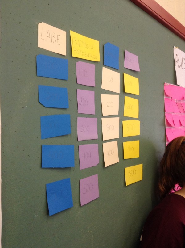 The other class is making stations for the grade 7s to rotate through for a 10 minute math activity.