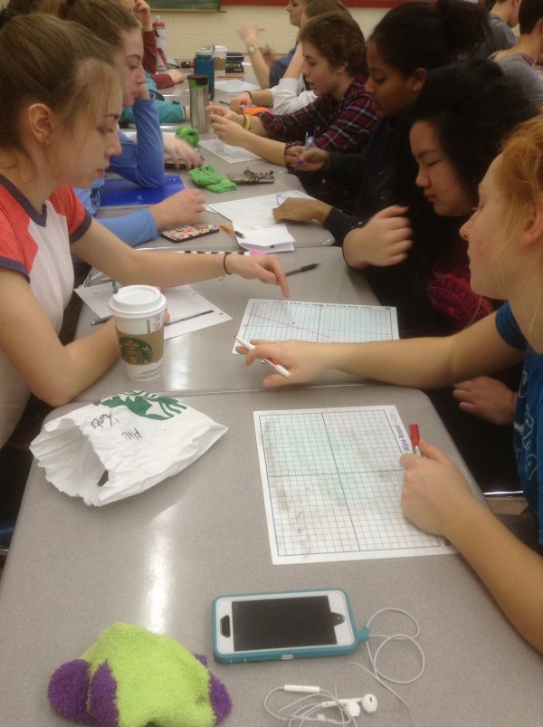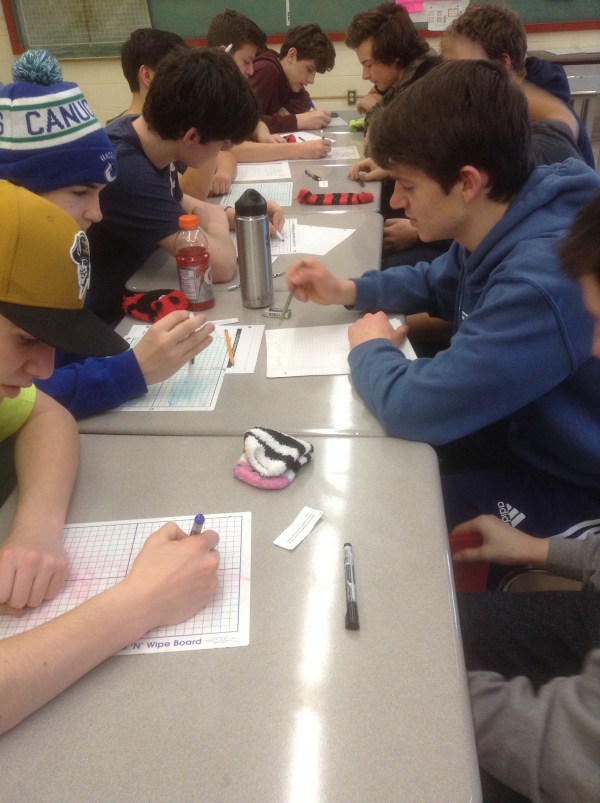 We worked with partners across the table, then after both partners are experts, one half of the partnership moved one seat to the right, and started again. We used whiteboards and our new fuzzy socks(erasers) for jotting down calculations and sketches.