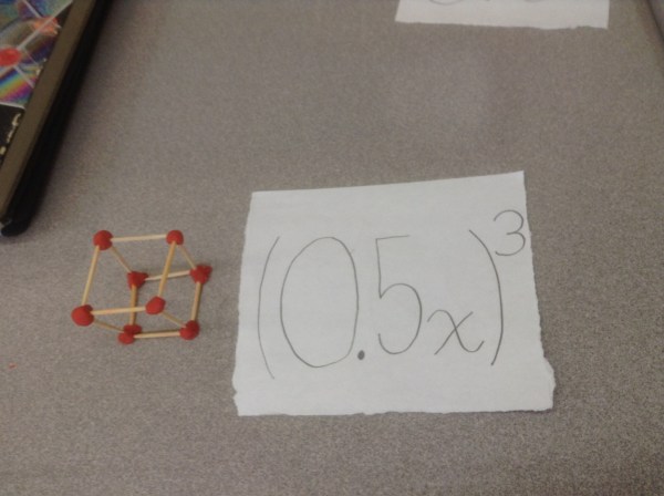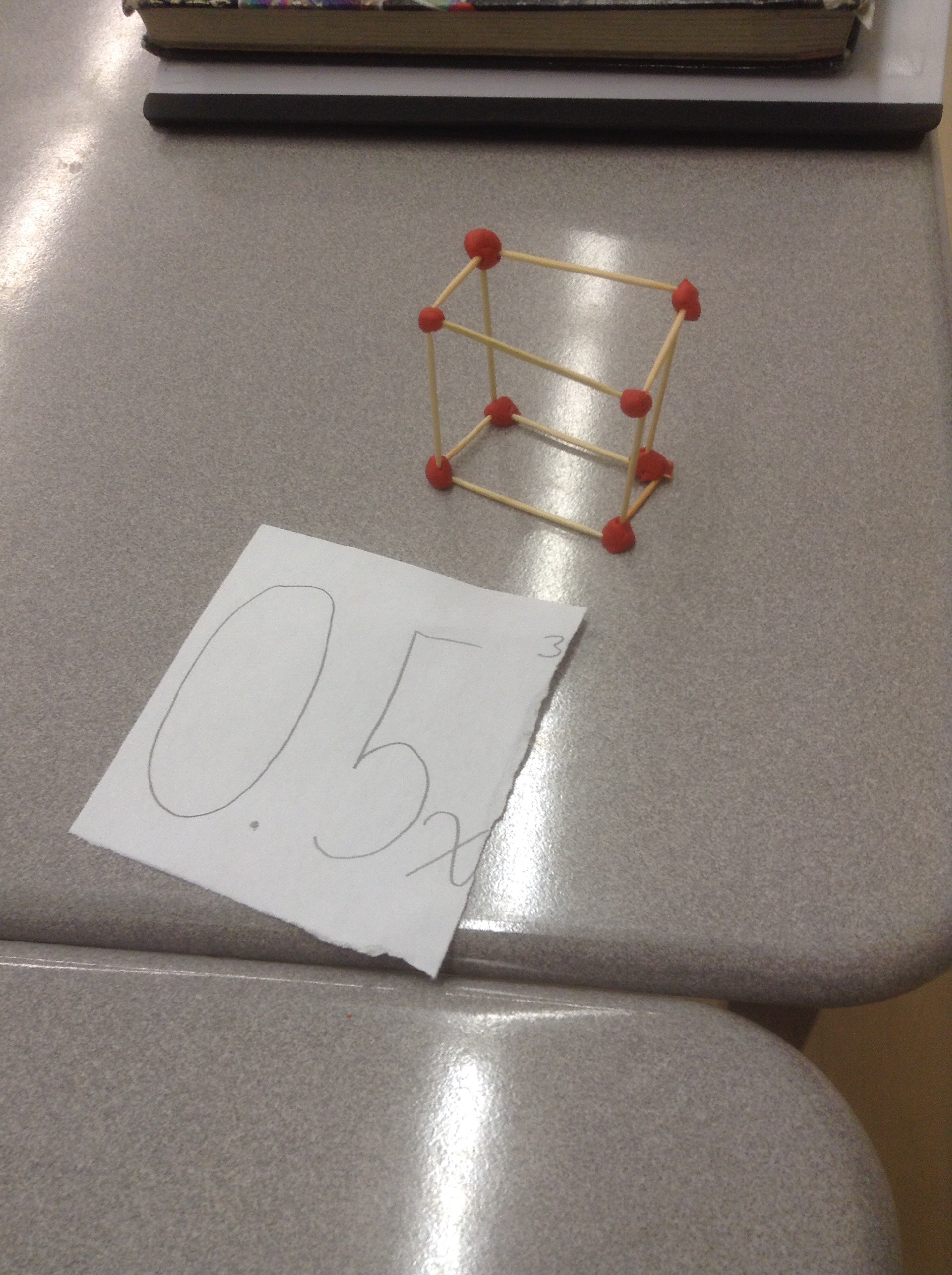 Here is a tiny cube, one eigth of the x cube. Note how (0.5)^3 is equal to 1/8.