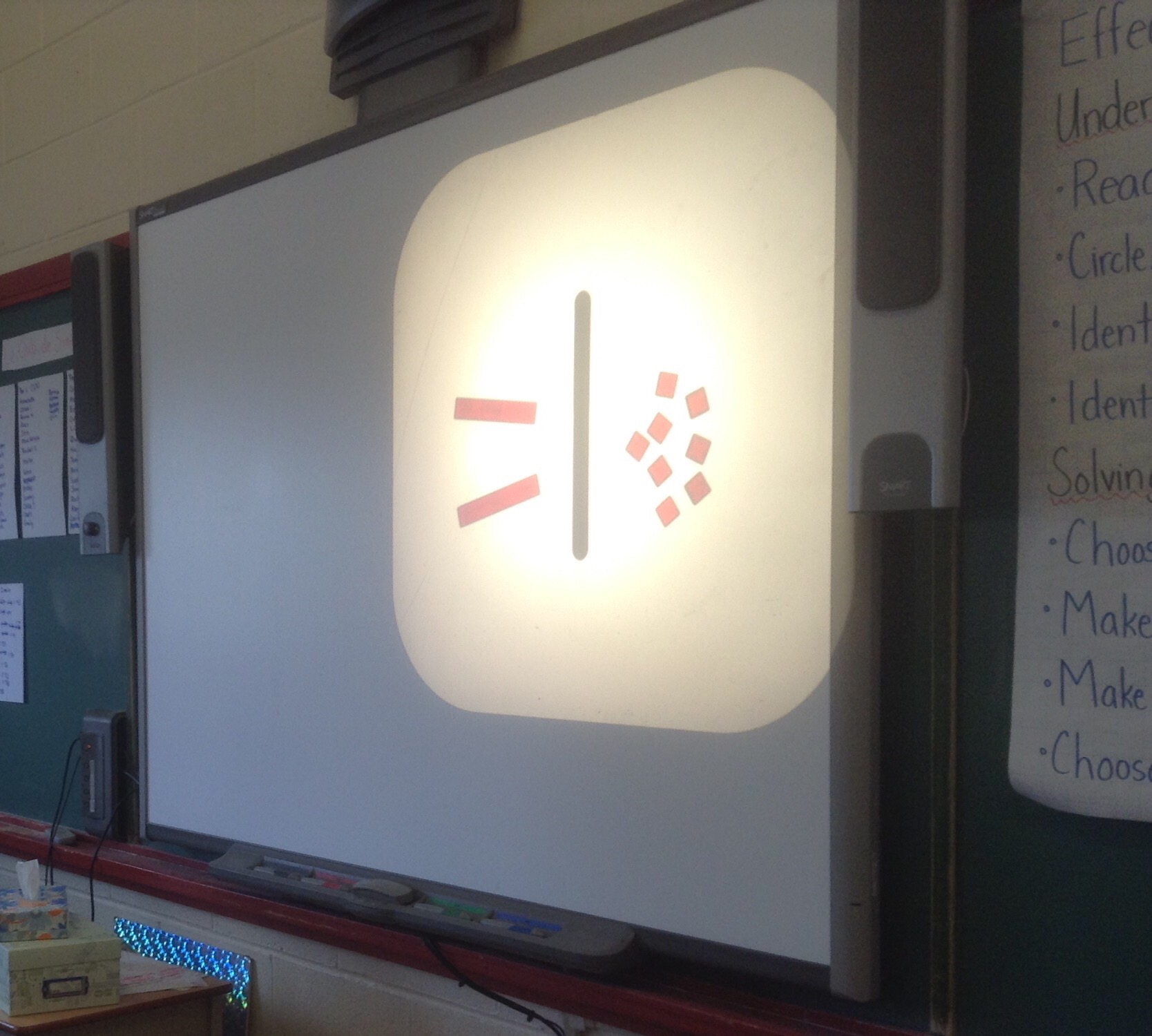 We have been practicing representing expressions with algebra tiles. We are getting pretty good at it. Now that weare solving equations, these representations are becoming useful yet again. We put a popsicle stick as the equal sign, and have to do the same thing on each side, always. We can add blue or red tiles to make zeros, or divide up both sides into groups to simplify equations.