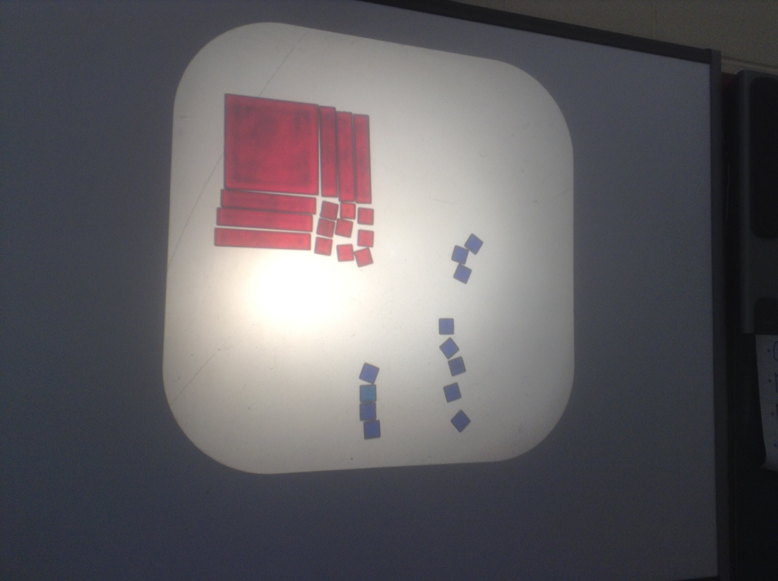 We notice that we could complete the square with 9 little red squares. Since we don’t have any, we need to add some zero pairs.