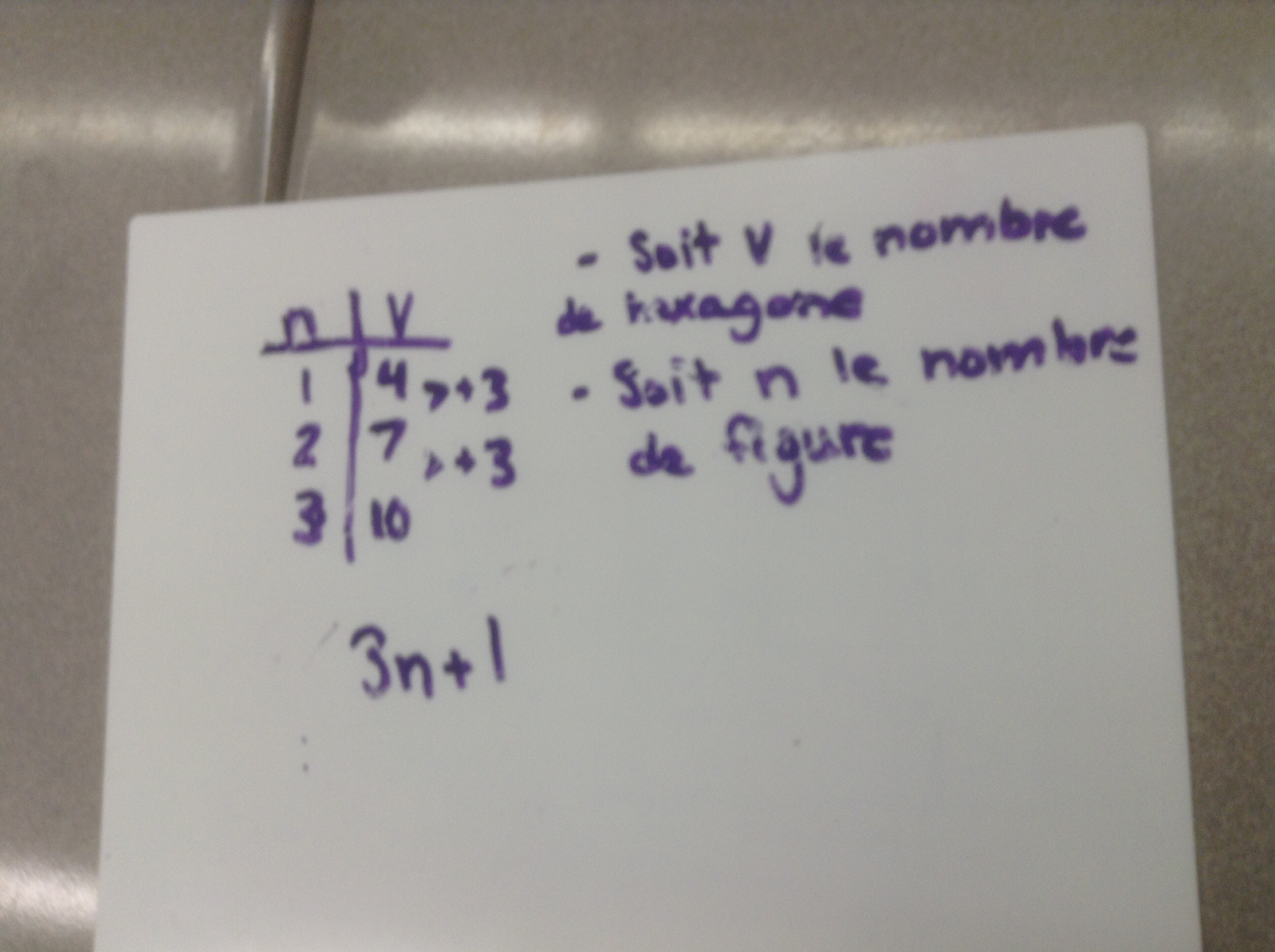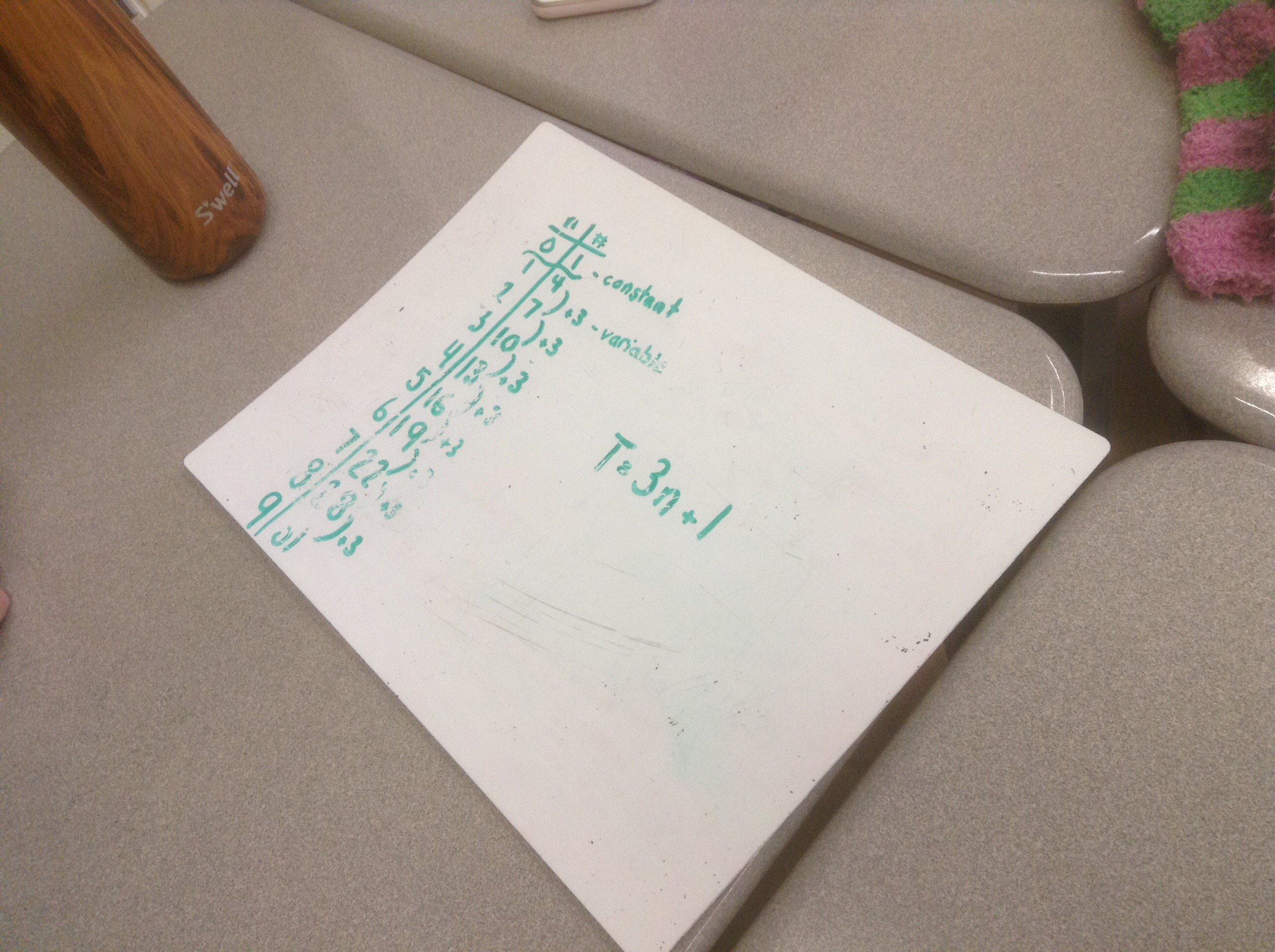 Our homework last night was to come up with figure 1,2,3 of a pattern.