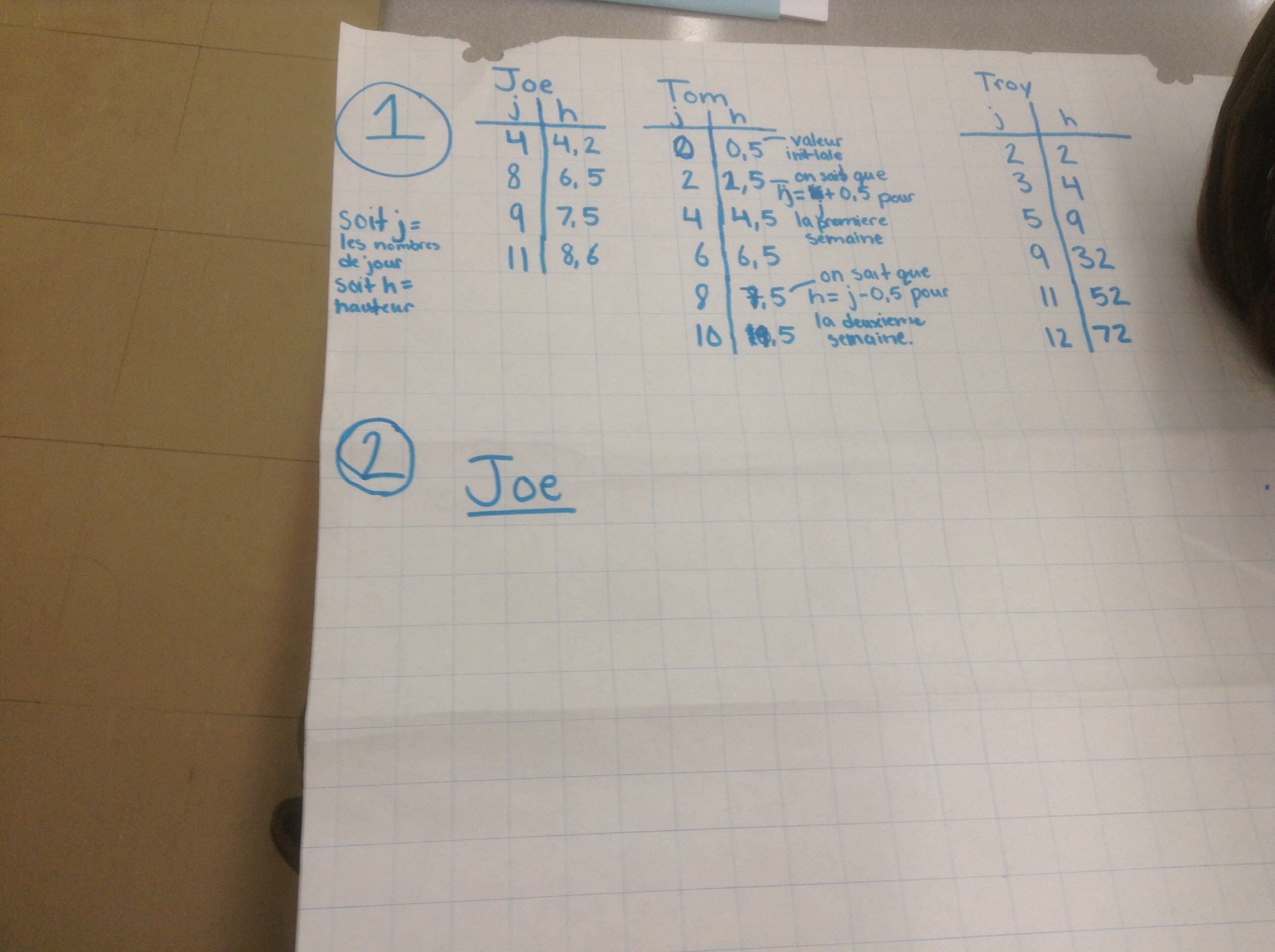 We have been practicing how to represent data in many ways. For our practice investigation we looked at data given in a table, a graph and a paragraph. We compared data by putting it all in the same format, and looking for trends