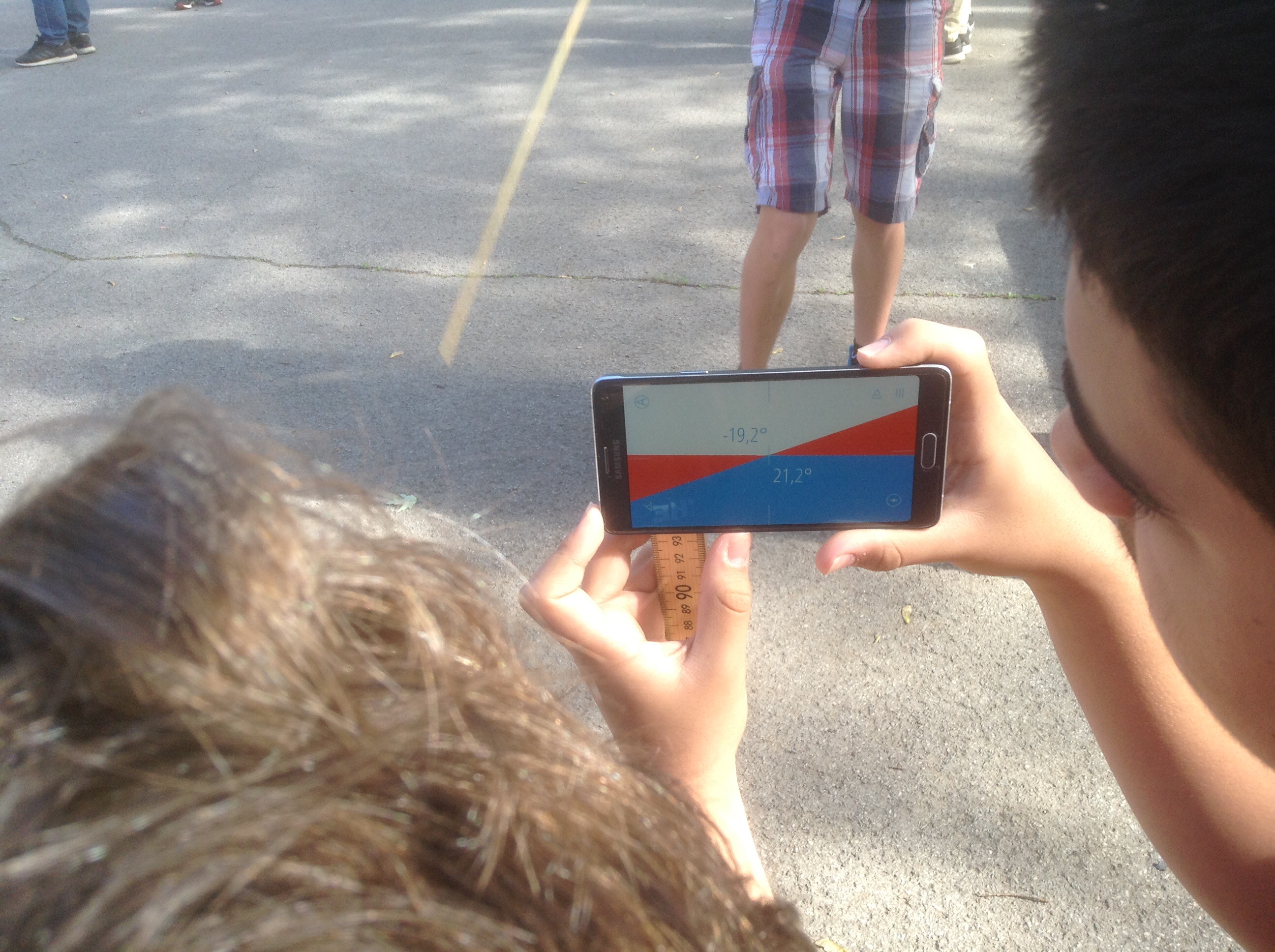 We used clinometers to determine the angle of elevation and calculate the height of the school.
