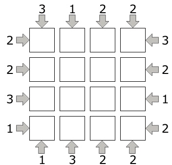 Today’s challenge has been an open question about a city plan. In the 4×4 square grid there are buildings that are either 4,3,2, or 1 story, but only one of each height in each row or column.