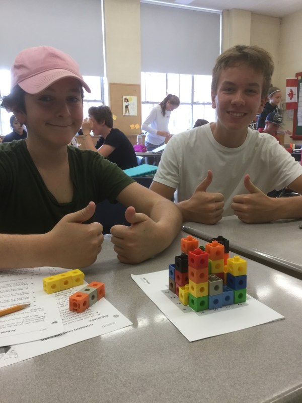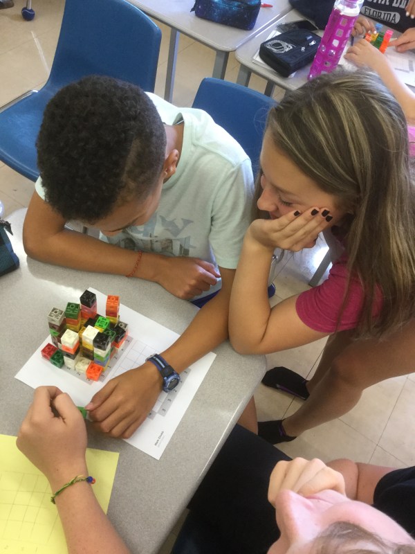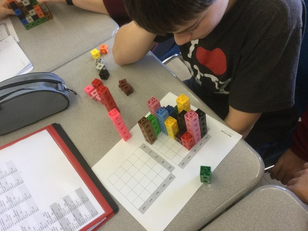We looked at different strategies for solving the problem, and how to use manipulative like linking cubes to help us.