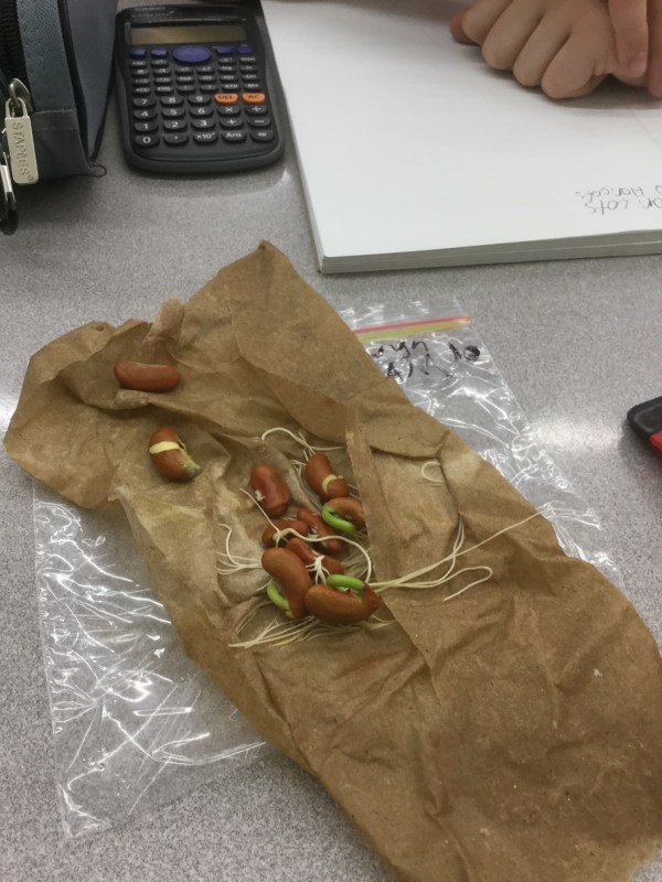 Grade 9s completed their germination experiment today. We had designed different experiments that tested the effects of variables on the germination of beans.