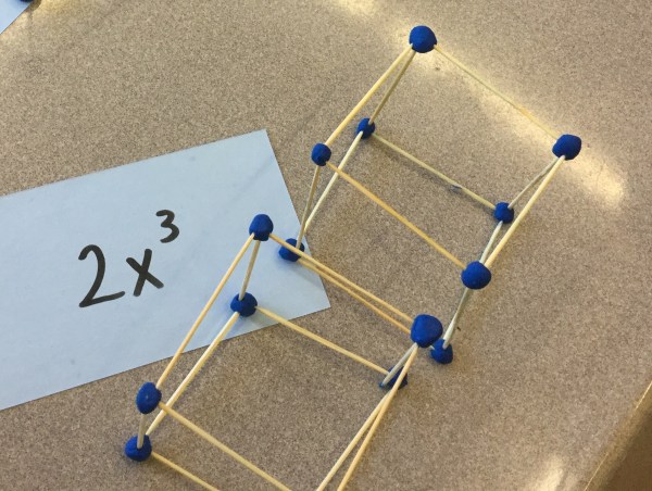 We noticed that within this big cube, with side length 2x, we can fit 8 little cubes with side length x. We can expand the expression (2x)^3 to be (2x)(2x)(2x) which is 8x^3.