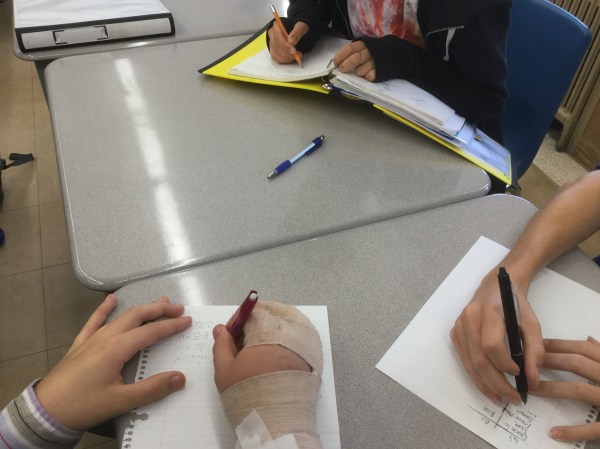 Today we had a look at how people solve problems. We had one member of each group solve a problem out loud, while the other group members looked for strategies that were used, and kept a log of what techniques and words were used.