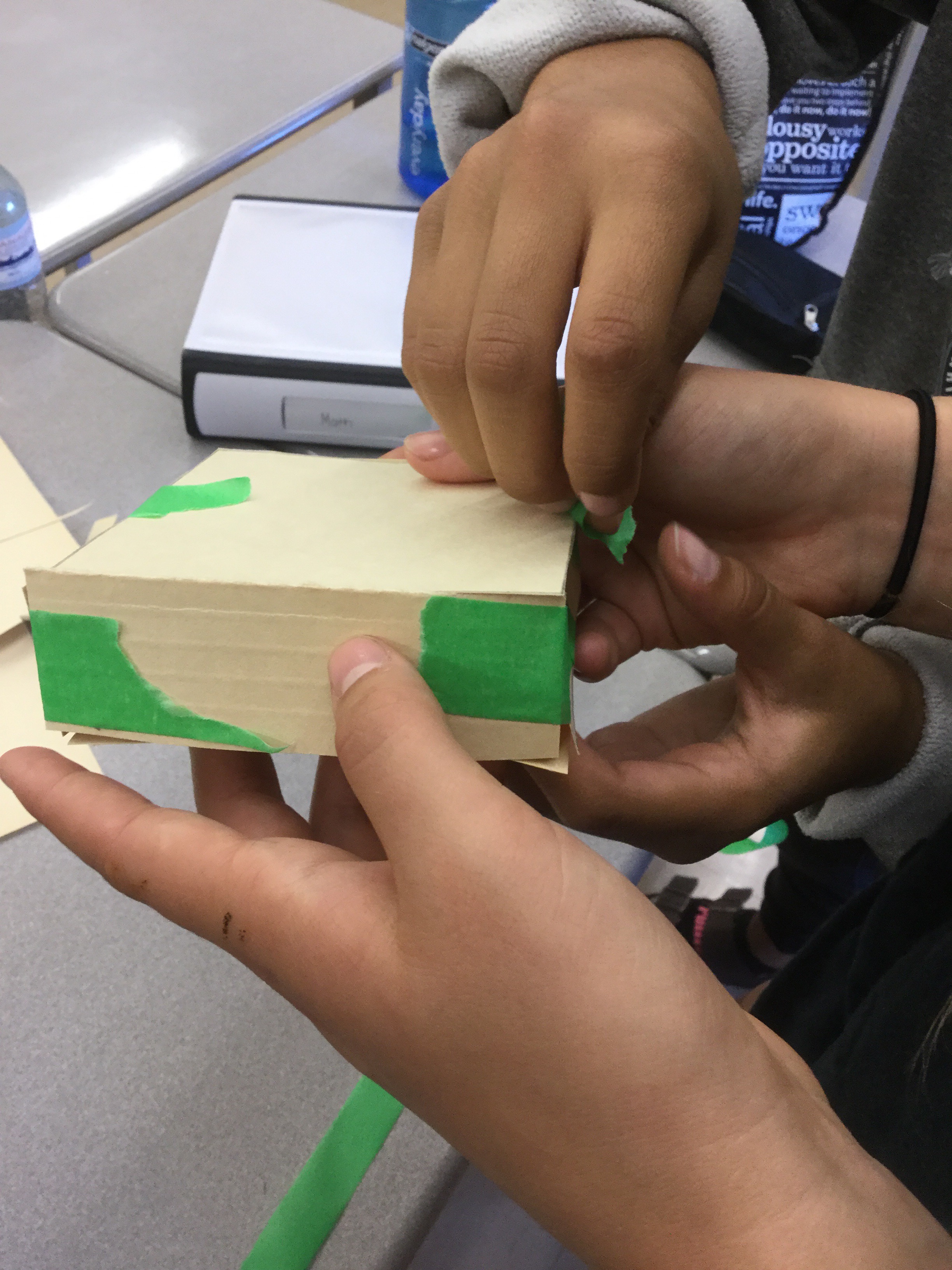We were working hard right until the bell today! After our quiz, we got into pairs and were given a challenge to create a box with a volume that is exactly 300 cubic centimetres.